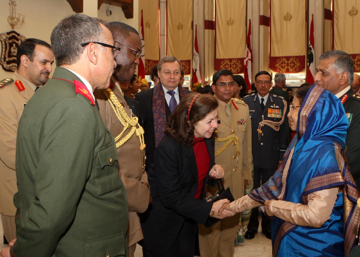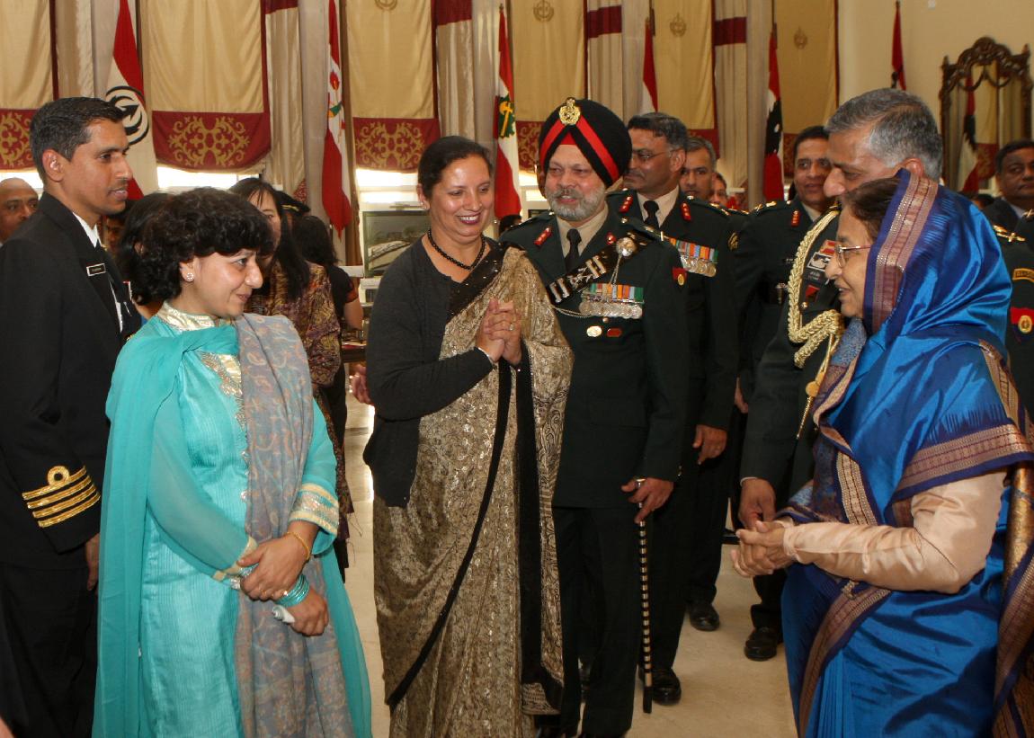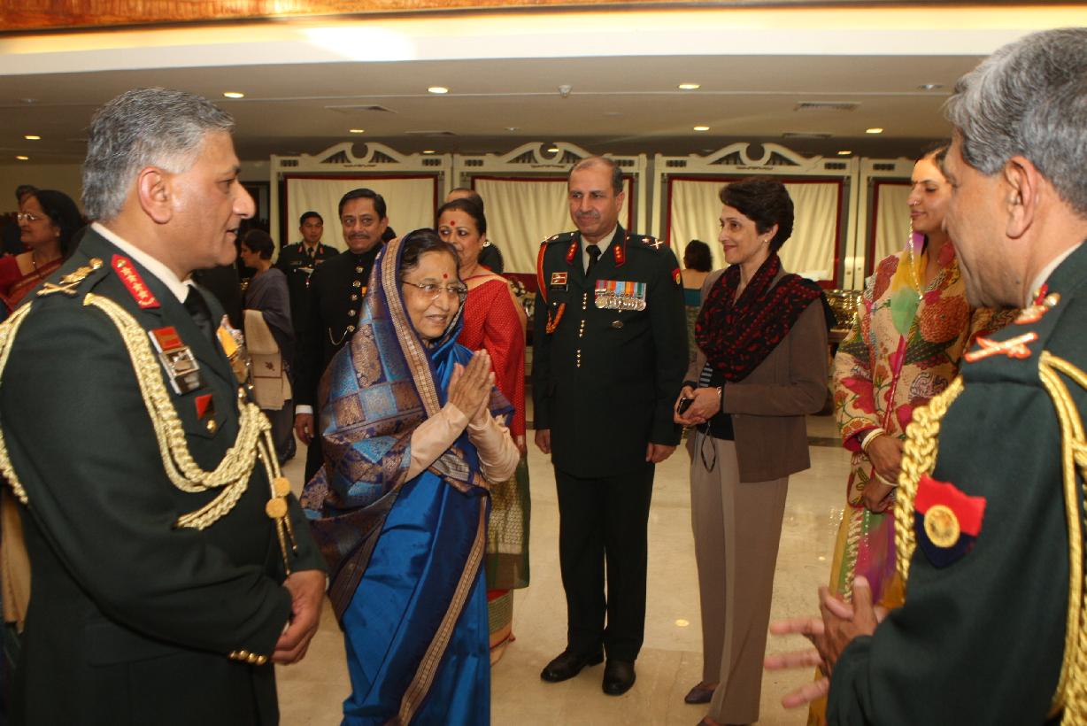 | Caption: | The President of India, Smt Pratibha Devisingh Patil at the Reception Hosted by the Chief of Army Staff, General V K Singh on the occasion of Army Day at Delhi Cantonment in New Delhi on Jan 15, 2011 |