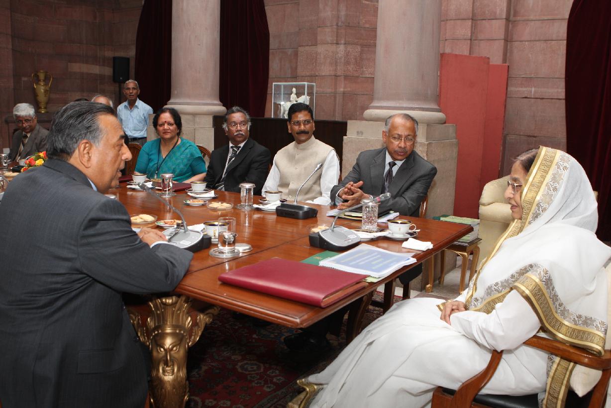 | Caption: | The President of India, Smt Pratibha Devisingh Patil Interacting with the National Disaster Management Authority at Rashtrapati Bhavan in New Delhi on July 16, 2010 |