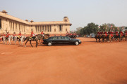 | Caption: | The President of India, Smt Pratibha Devisingh Patil presenting the National Salute to President Body Guard at Forecourt of Rashtrapati Bhavan in New Delhi on Jan 26, 2011 |