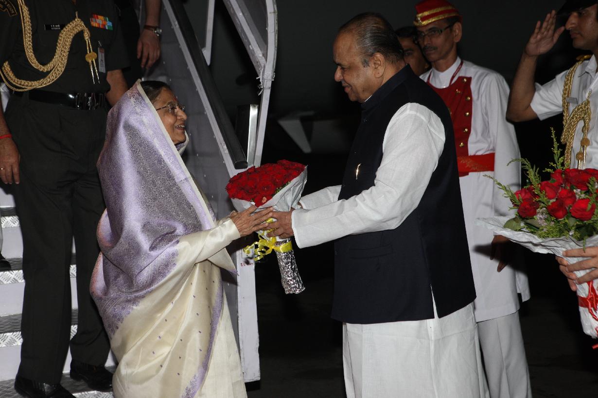 | Caption: | The President of India, Smt Pratibha Devisingh Patil being welcomed by the Governor of Maharashtra, Shri K Sankaranarayanan at Chhatrapati Shivaji International Airport of Mumbai in Maharashtra on Oct 16, 2011 |