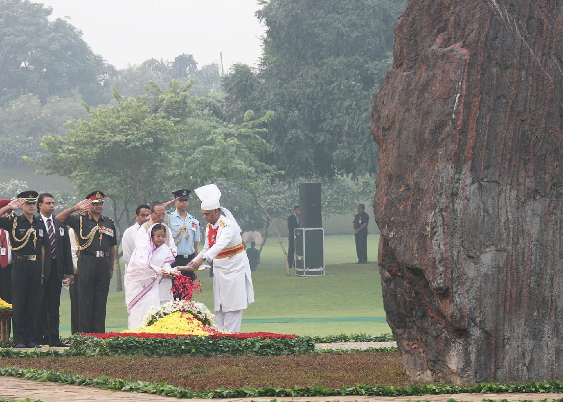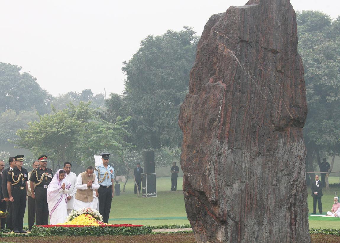 | Caption: | The President of India, Smt Pratibha Devisingh Patil paying homage at the Samadhi of Former Prime Minister of India, Late Smt Indira Gandhi on the occasion of her 27th Death Anniversary at Shakti Sthal in New Delhi on Oct 31, 2011 |