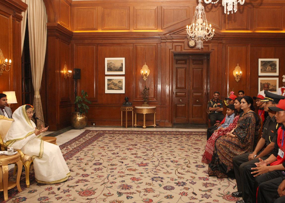 | Caption: | The President of India, Smt Pratibha Devisingh Patil interacting with the Students from Kokrajhar and Chirang District (Assam) Under Operation Sadbhavana Tour at Rashtrapati Bhavan in New Delhi on Oct 20, 2011 |