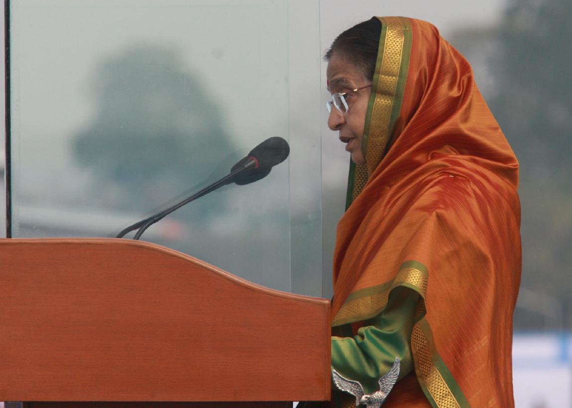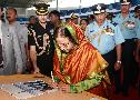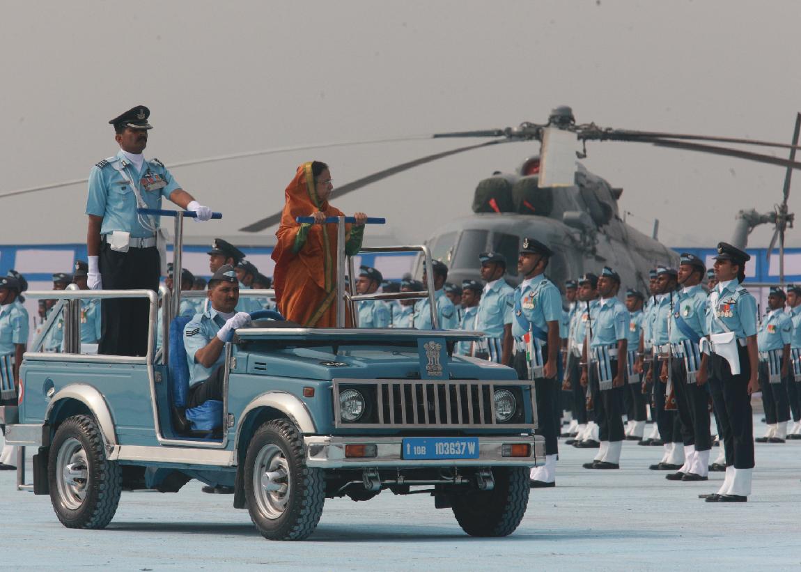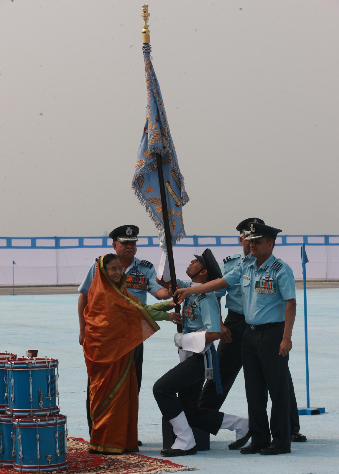 | Caption: | The President of India, Smt Pratibha Devisingh Patil at the Presentation of the President Standard to 44 SQN & 110 HU at Bagdogra in West Bengal on March 09, 2011 |