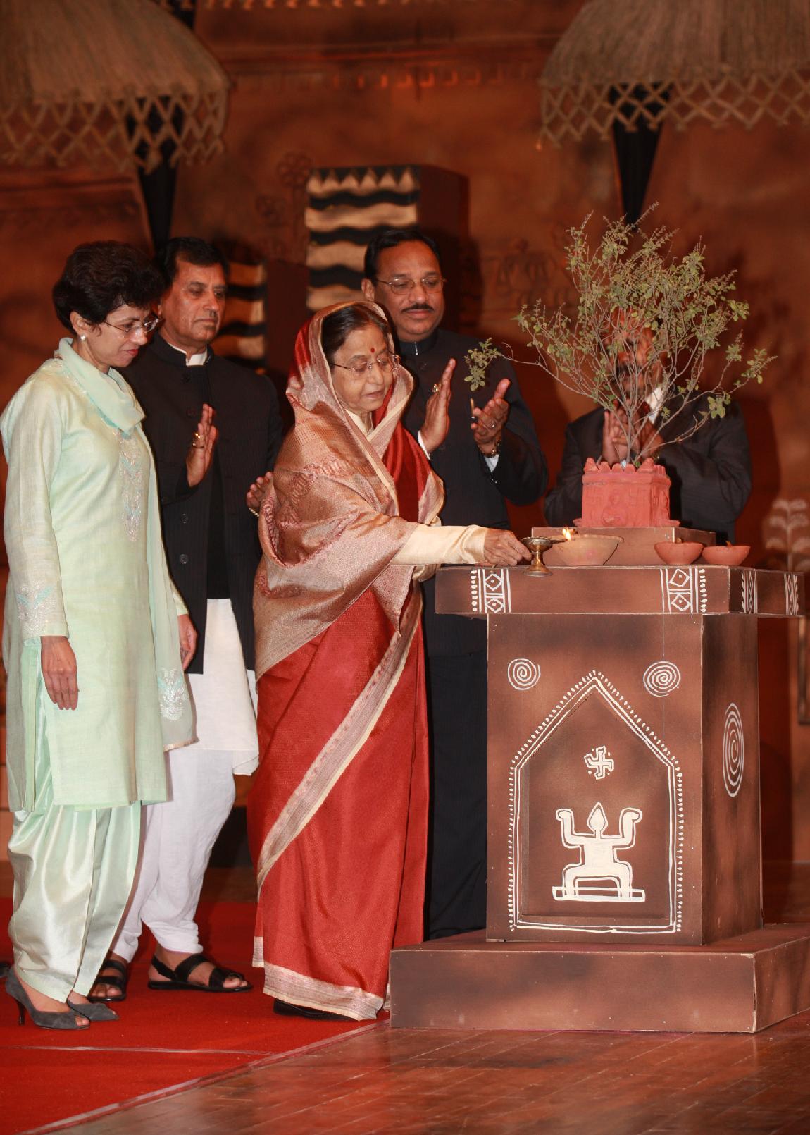| Caption: | The President of India, Smt Pratibha Devisingh Patil inaugurating the National Level Tribal Festival 'PRAKRITI' at Sri Fort Auditorium in New Delhi on March 16, 2011 |