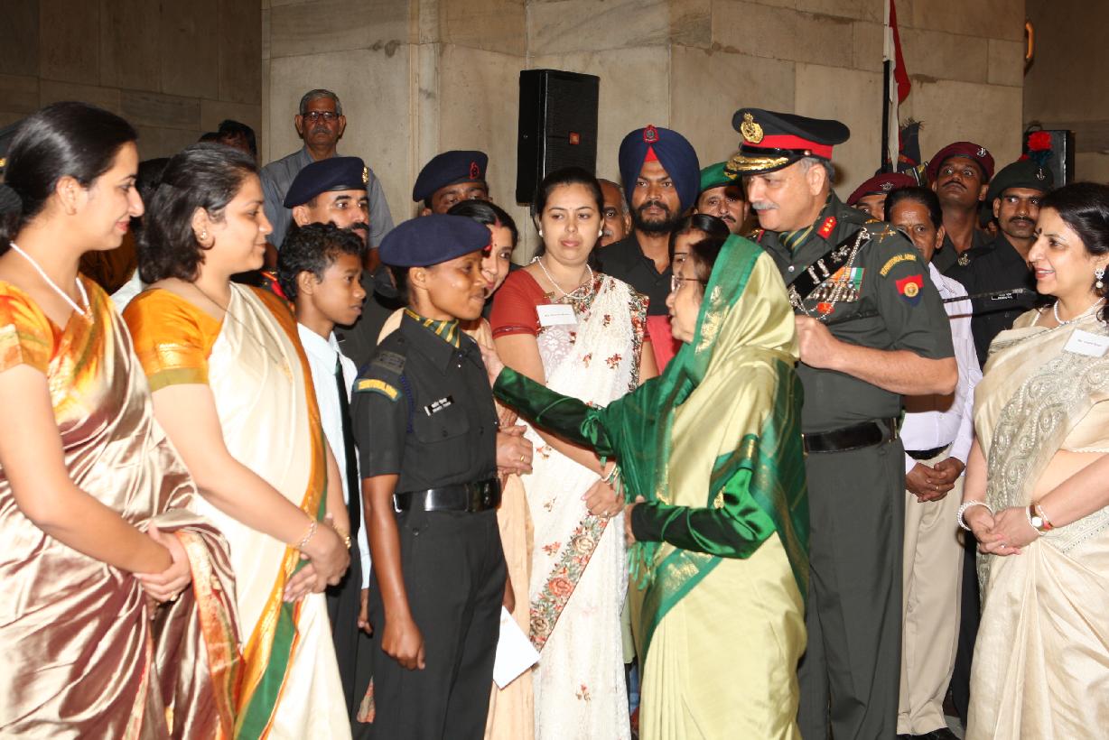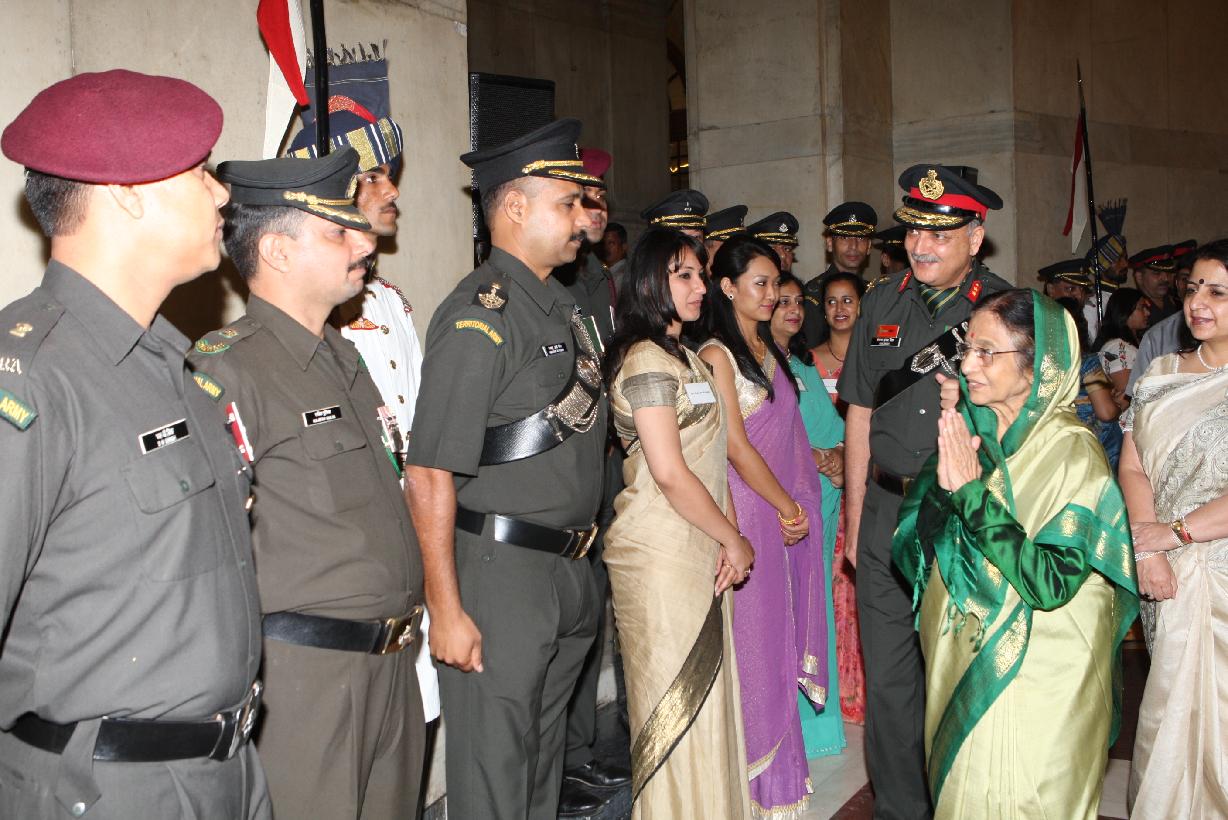 | Caption: | The President of India, Smt Pratibha Devisingh Patil interacting with the Territorial Army Officer, JCOs & Ors at Rashtrapati Bhavan in New Dehli on Oct 13, 2011 |