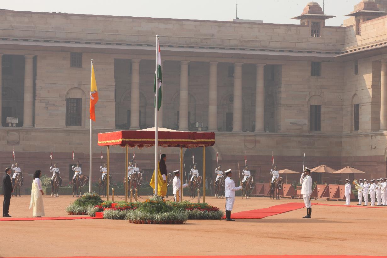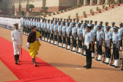 | Caption: | The President of India, Smt Pratibha Devisingh Patil at the Ceremonial Reception of the King of Bhutan, HE Mr Jigme Khesar Namgyel Wangchuck at Forecourt of Rashtrapati Bhavan in New Delhi on Oct 24, 2011 |