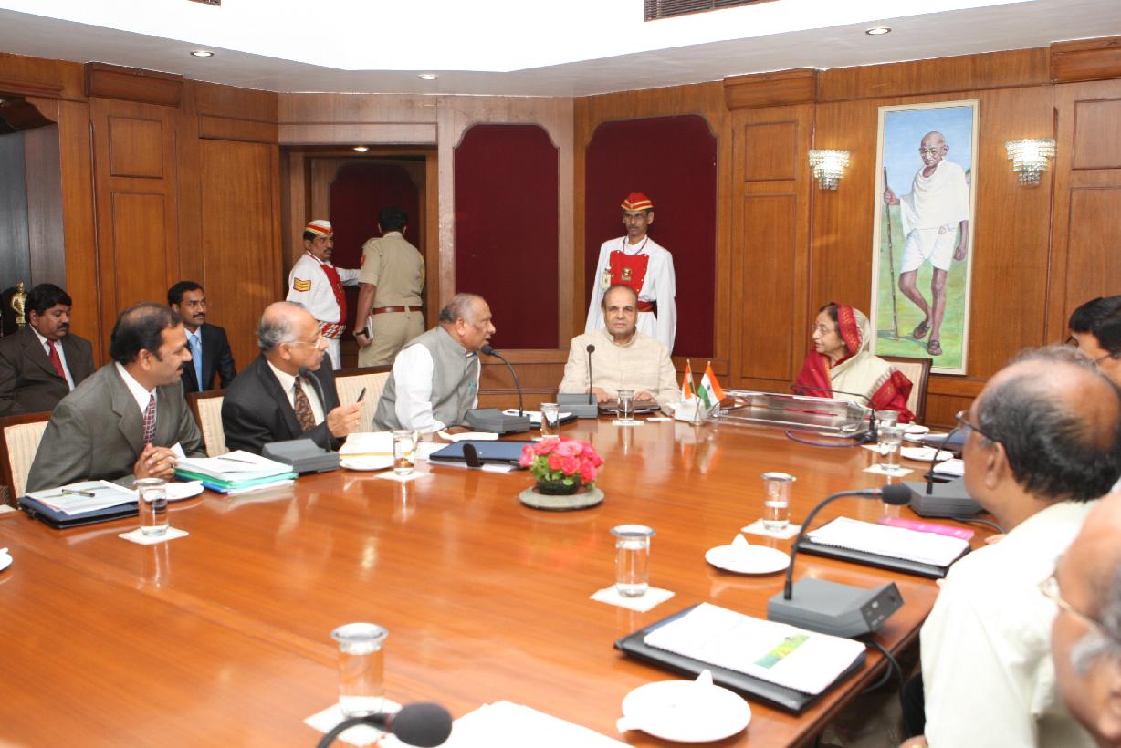 | Caption: | The President of India, Smt Pratibha Devisingh Patil interacting with the Minister's of Maharashtra at Mumbai in Maharashtra on July 03, 2010 |