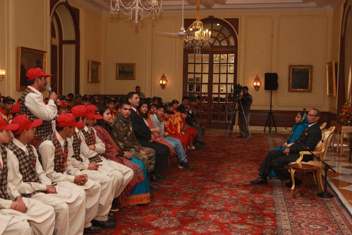 | Caption: | The President of India, Smt Pratibha Devisingh Patil interacting with the Students from Baramullah in Jammu and Kashmir at Rashtrapati Bhavan in New Delhi on Jan 28, 2011 |