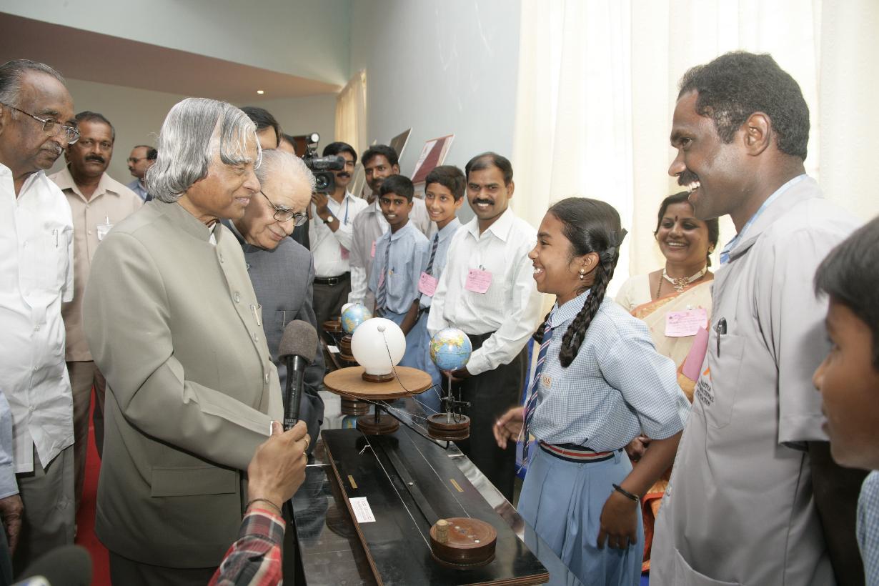 | Caption: | The President of India, Dr A P J Abdul Kalam with the Children from Agastya International Foundation at Bangalore in Karnataka on Aug 21, 2006 |