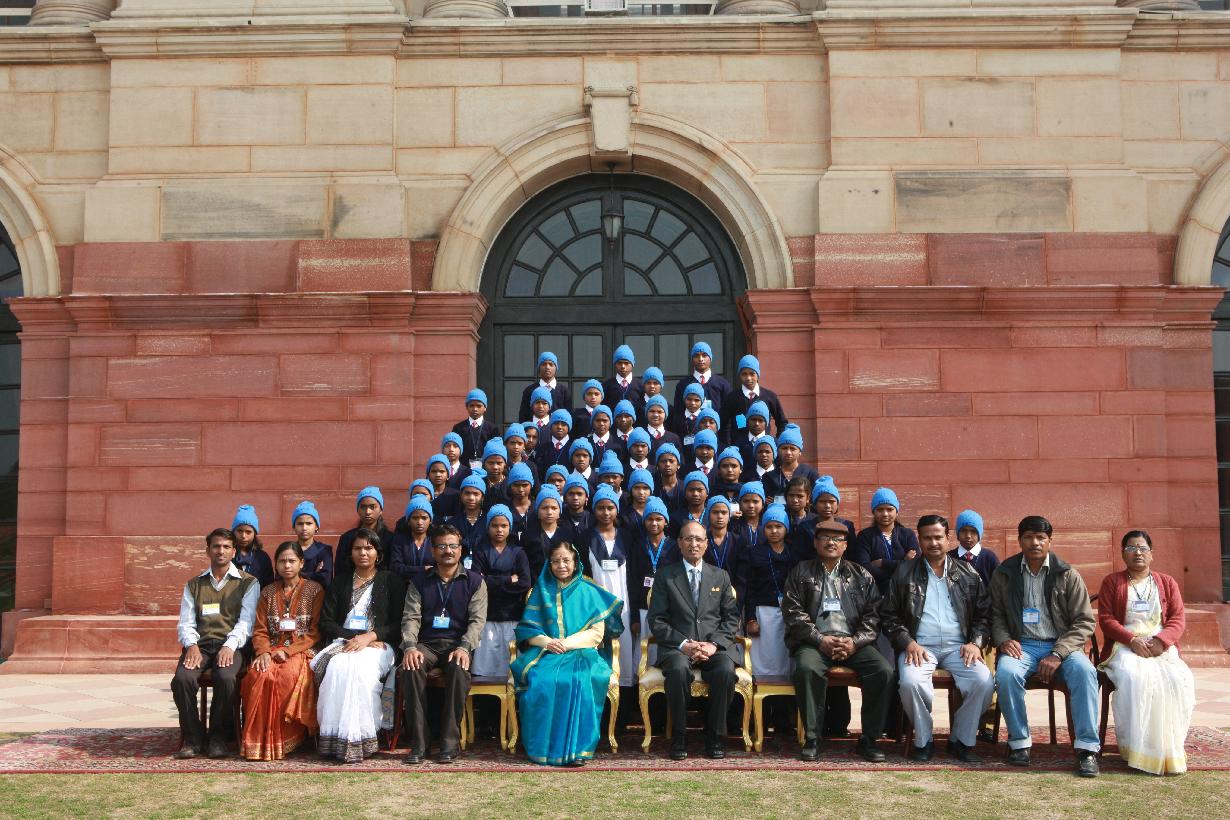 | Caption: | The President of India, Smt Pratibha Devisingh Patil interacting with the Students from Dharni, Chikhaldara and others Talukas of Amravati District at Rashtrapati Bhavan in New Delhi on Jan 28, 2011 |