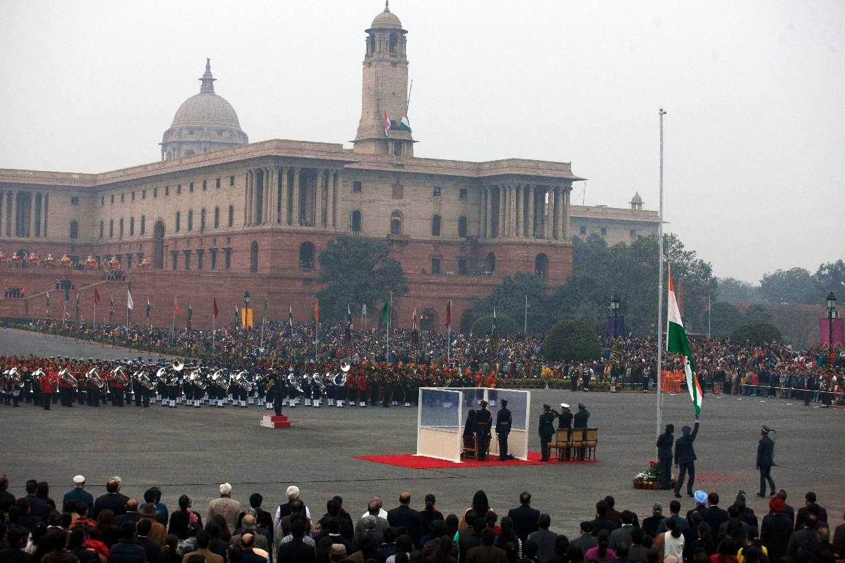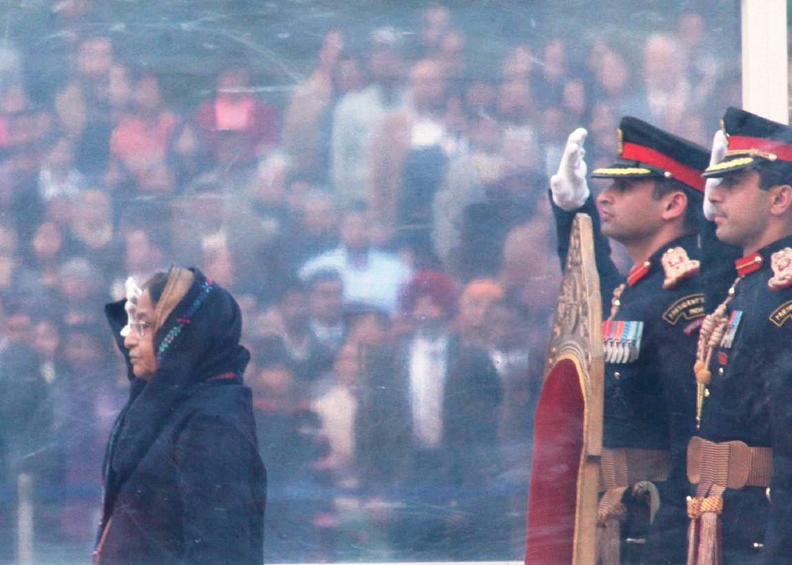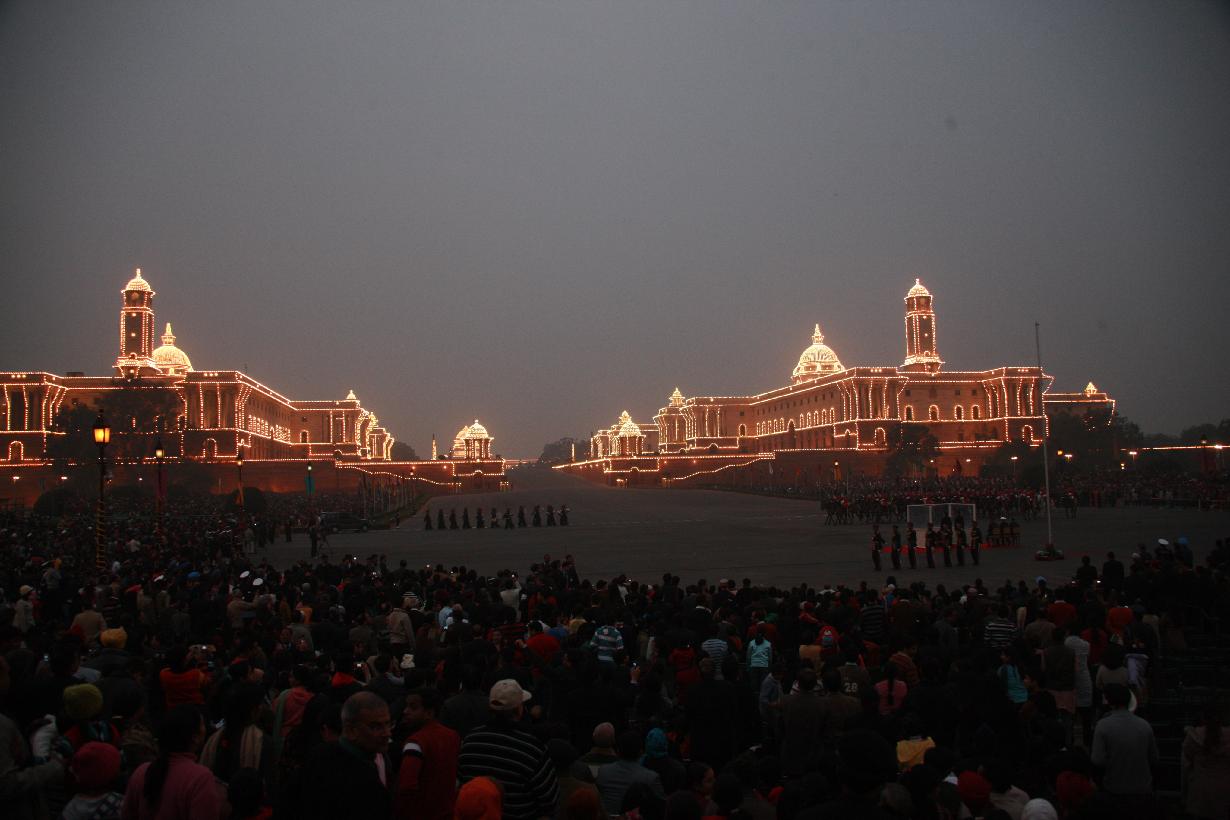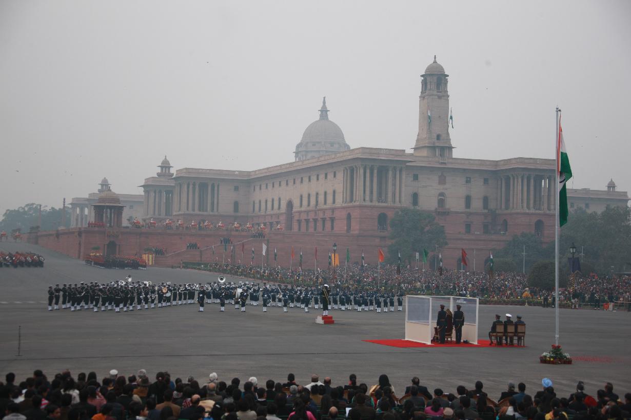 | Caption: | The President of India, Smt Pratibha Devisingh Patil witnessing Beating Retreat at Vijay Chowk in New Delhi on Jan 29, 2011 |