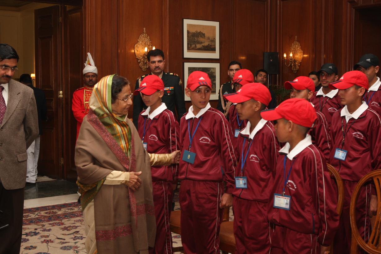 | Caption: | The President of India, Smt Pratibha Devisingh Patil interacting with the Children from Poonch District of Jammu and Kashmir at Rashtrapati Bhavan in New Delhi on Jan 12, 2011 |