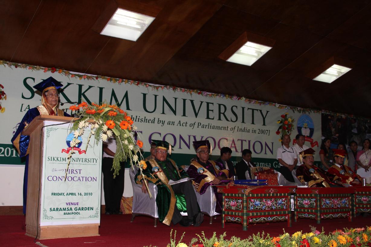 | Caption: | The President of India, Smt Pratibha Devisingh Patil during the 1st Convocation of Sikkim University at Ranipool in Gangtok, Sikkim on April 16, 2010 |