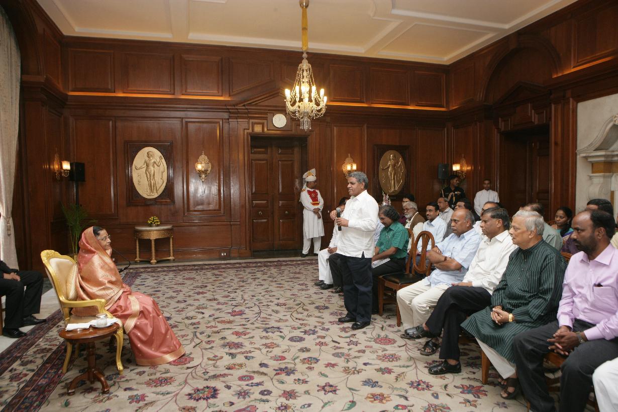 | Caption: | The President of India, Smt Pratibha Devisingh Patil interacting with the delegates from Accreditation Committee for Print & Electronic Media at Rashtrapati Bhavan in New Delhi on Oct 24, 2010 |