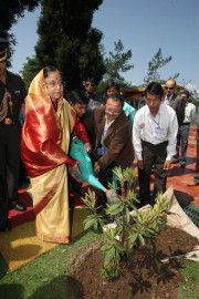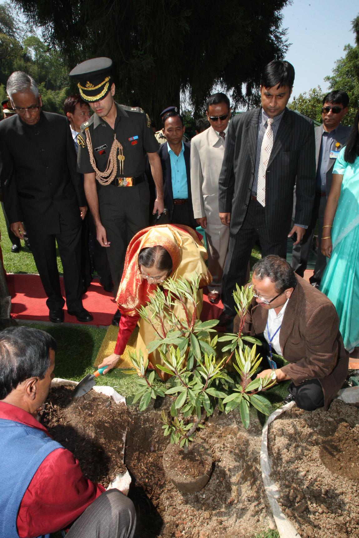 | Caption: | The President of India, Smt Pratibha Devisingh Patil planting a Sapling at Raj Bhavan of Gangtok in Sikkim on April 16, 2010 |