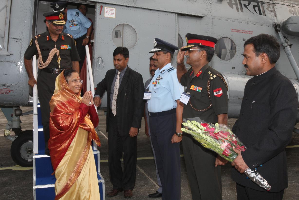 | Caption: | The President of India, Smt Pratibha Devisingh Patil arriving at Bagdogra Airport in Bagdogra, West Bengal on April 16, 2010 |