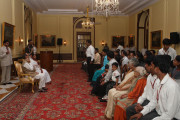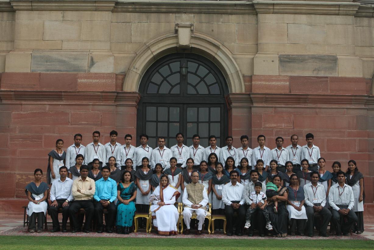 | Caption: | The President of India, Smt Pratibha Devisingh Patil interacting with the Students from Vidya Bharati Mahavidyalaya from Amravati at Rashtrapati Bhavan in New Delhi on Oct 26, 2010 |