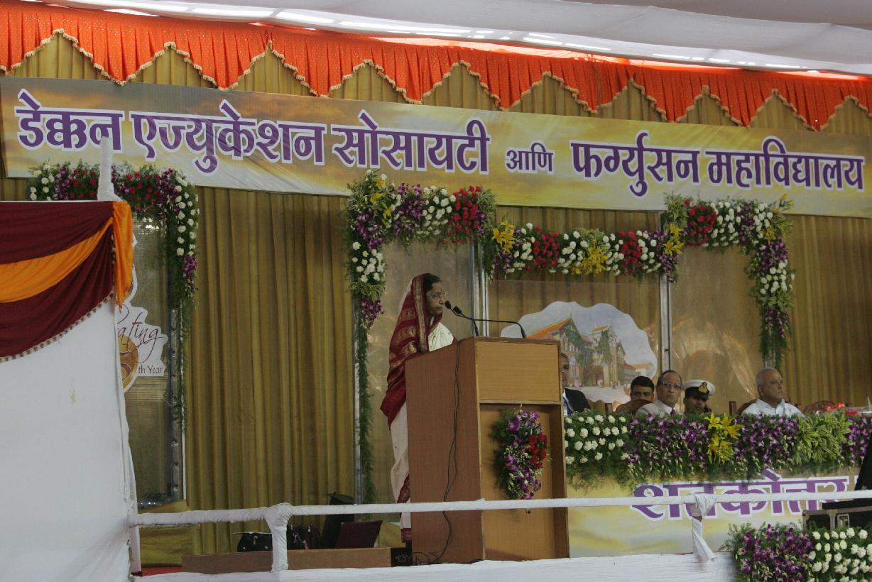 | Caption: | The President of India, Smt Pratibha Devisingh Patil at the Concluding Ceremony of the Post-Centenary Silver Jubilee Year of Fergusson College at Pune in Maharashtra on April 19, 2010 |