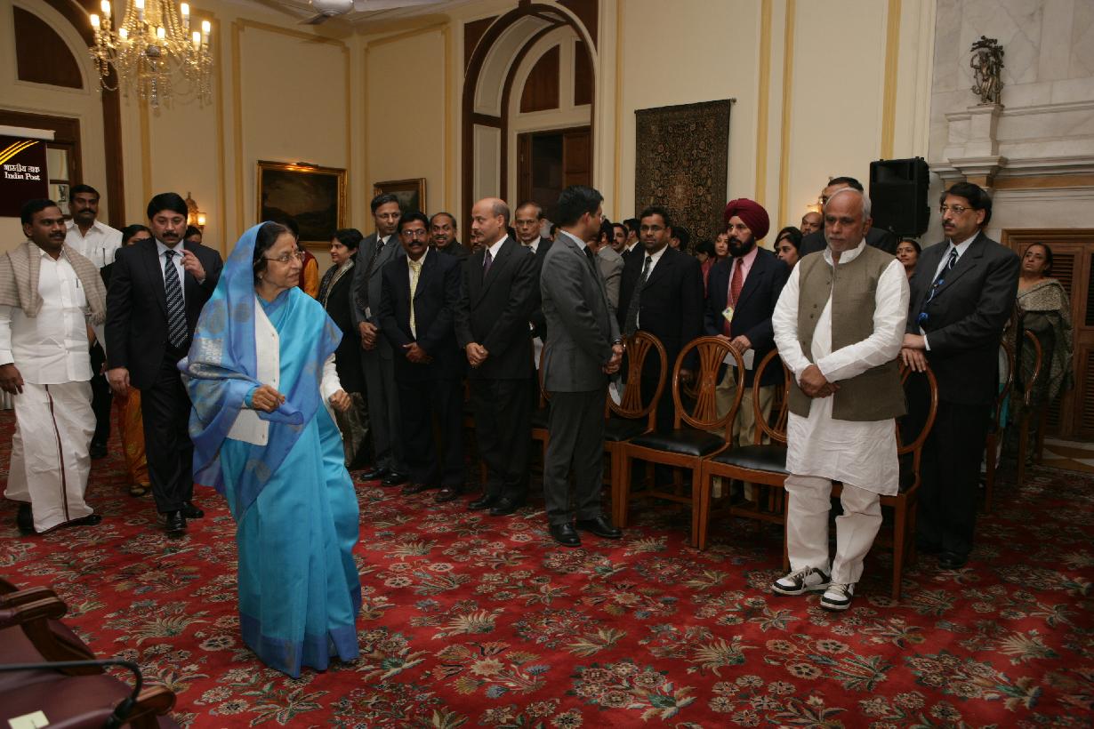 | Caption: | The President of India, Smt Pratibha Devisingh Patil releasing the Commemorative Postage Stamps on 'Textiles of India' at Rashtrapati Bhavan in New Delhi on Dec 10, 2009 |