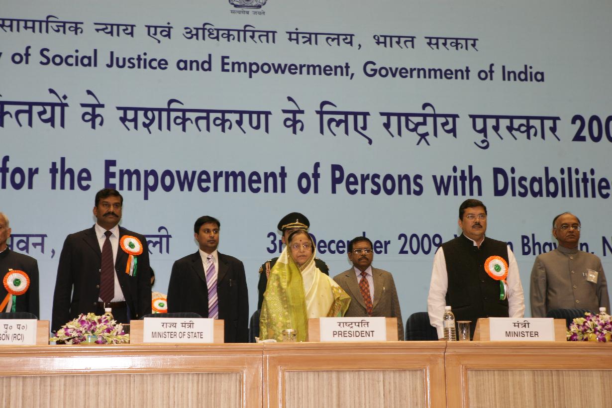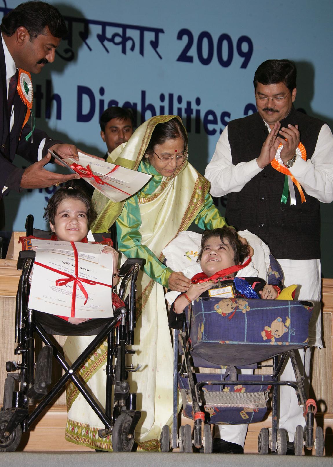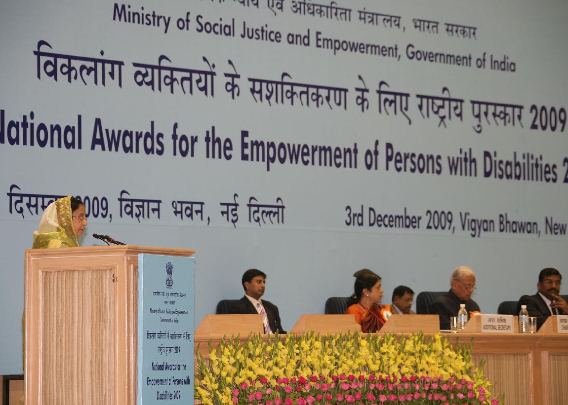 | Caption: | The President of India, Smt Pratibha Devisingh Patil presenting the National Awards for the Empowerment of Persons with Disabilities 2009 on the International Day of Disabled Persons at Vigyan Bhavan in New Delhi on Dec 03, 2009 |