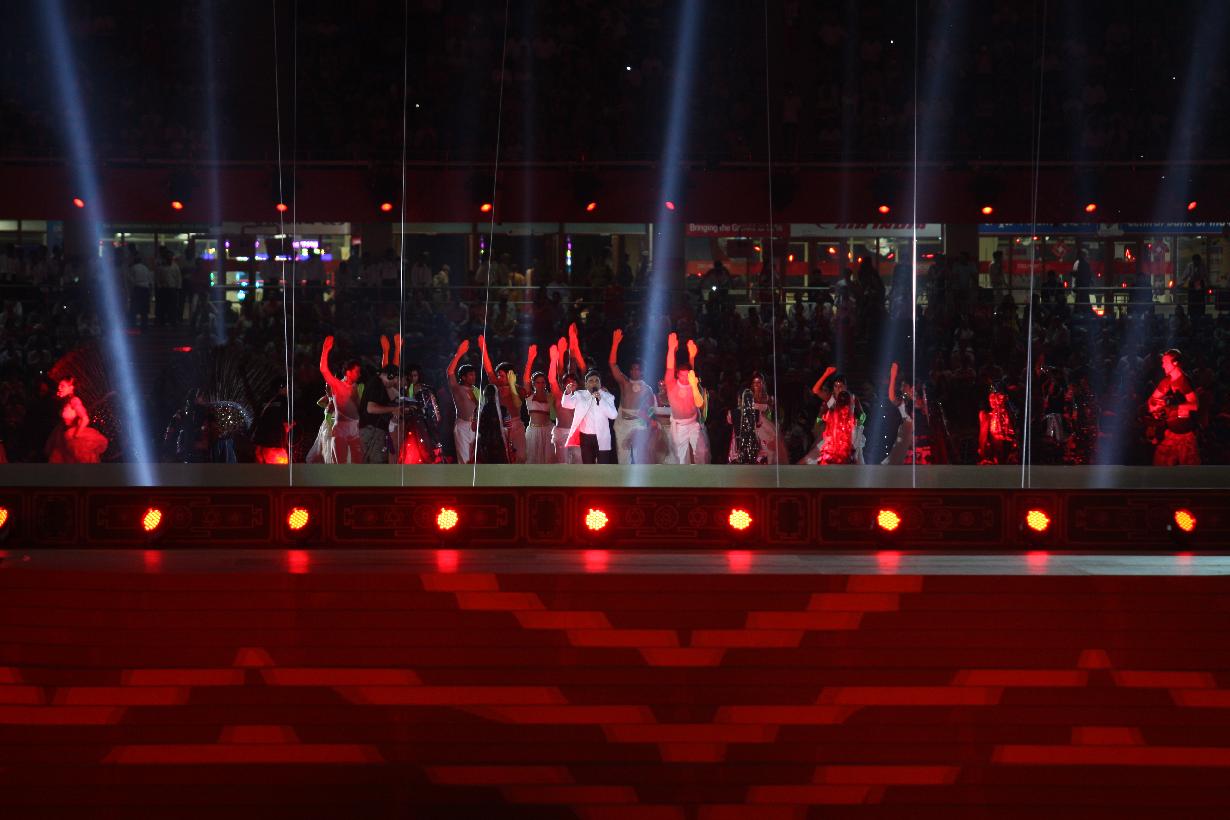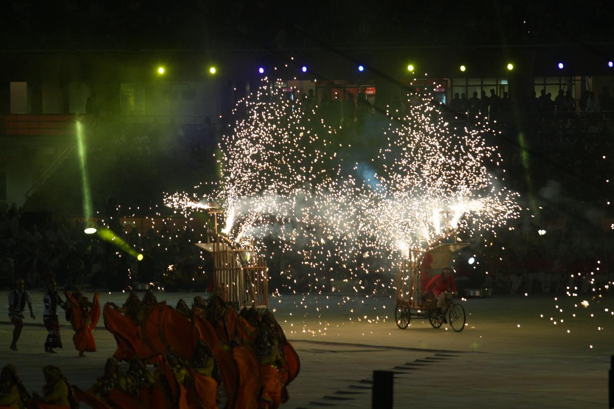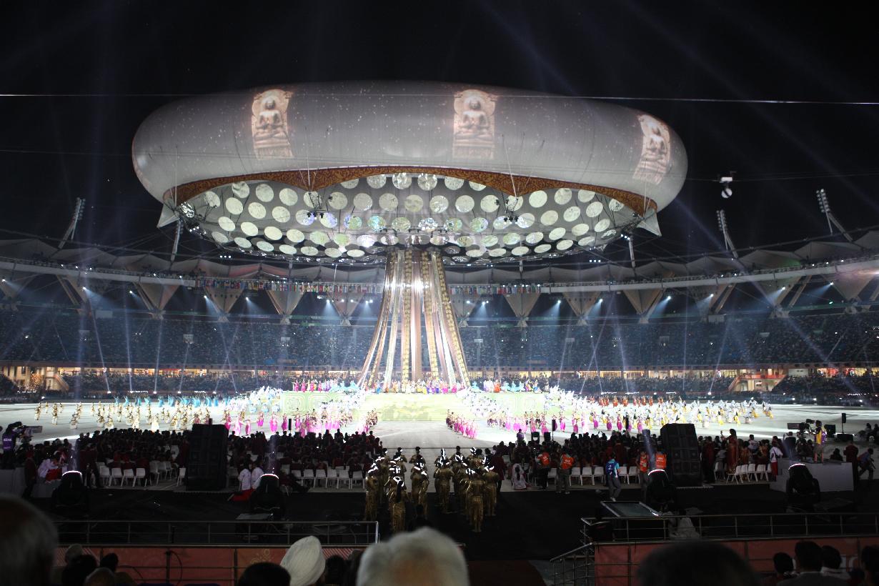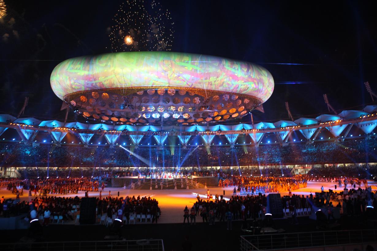 | Caption: | The President of India, Smt Pratibha Devisingh Patil during the Opening Ceremony of the 19th Commonwealth Games 2010 and waving to the Indian Contingent during the March Past of teams at the Opening Ceremony at Jawaharlal Nehru Stadium in New Delhi on Oct 03, 2010 |