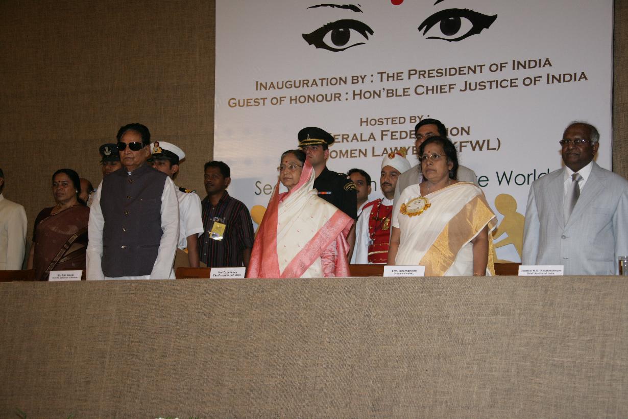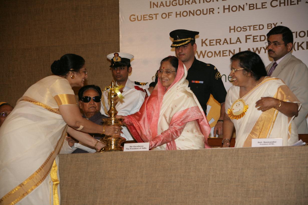 | Caption: | The President of India, Smt Pratibha Devisingh Patil during the National Conference organised by the All India Federation of Women Lawyers and being received the First Copy of the Souvenir from the Governor of Kerala, Shri R S Gavai at Kochi in Kerala on Dec 28, 2009 |