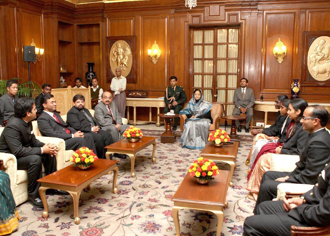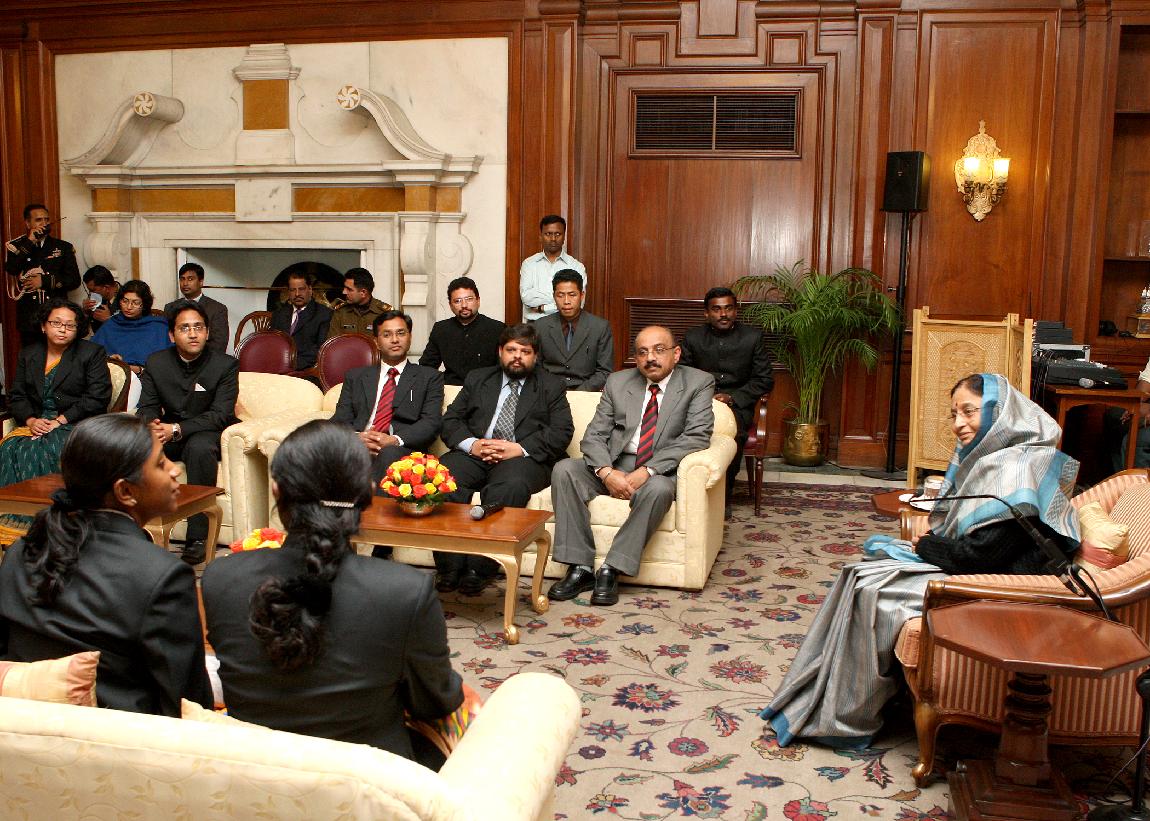 | Caption: | The President of India, Smt Pratibha Devisingh Patil interacting with Probationers of IA and AS (Account Service) at Rashtrapati Bhavan in New Delhi on Feb 24, 2009 |