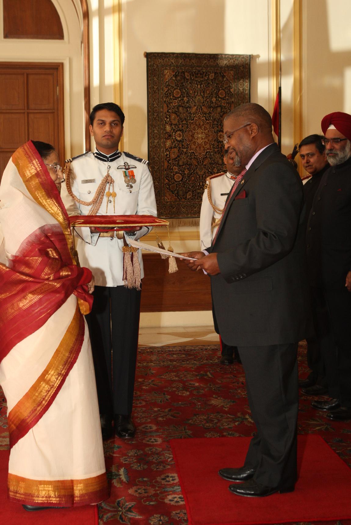 | Caption: | HE Mr Harris Mbulelo Sithembile Majeke, High Commissioner-Designate of South Africa to India presenting his credentials to the President of India, Smt Pratibha Devisingh Patil at Rashtrapati Bhavan in New Delhi on April 08, 2010 |