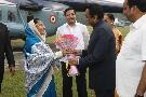 | Caption: | The President of India, Smt Pratibha Devisingh Patil arriving at GTC Helipad (Dehradun) in Uttarakhand on Oct 23, 2010 |