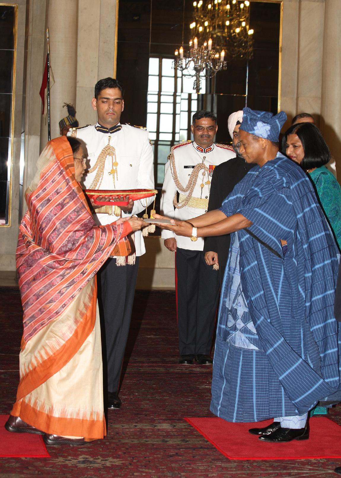 | Caption: | HE Mr Andre Sanra, Ambassador-Designate of Benin to India presenting his credentials to the President of India, Smt Pratibha Devisingh Patil at Rashtrapati Bhavan in New Delhi on Oct 18, 2010 |
