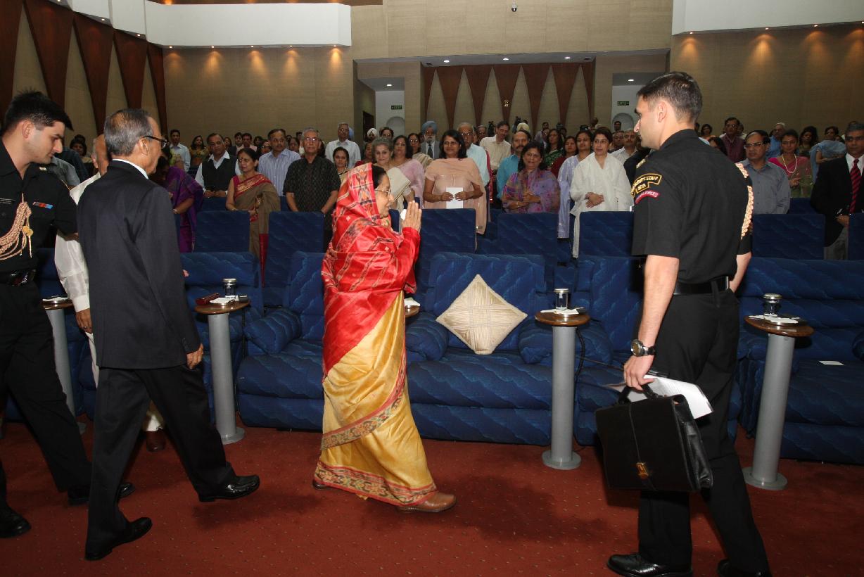 | Caption: | The President of India, Smt Pratibha Devisingh Patil interacting with Ms Anita Singhvi and her Accompanying Artistes after her Gazal Recital at Rashtrapati Bhavan in New Delhi on April 30, 2010 |