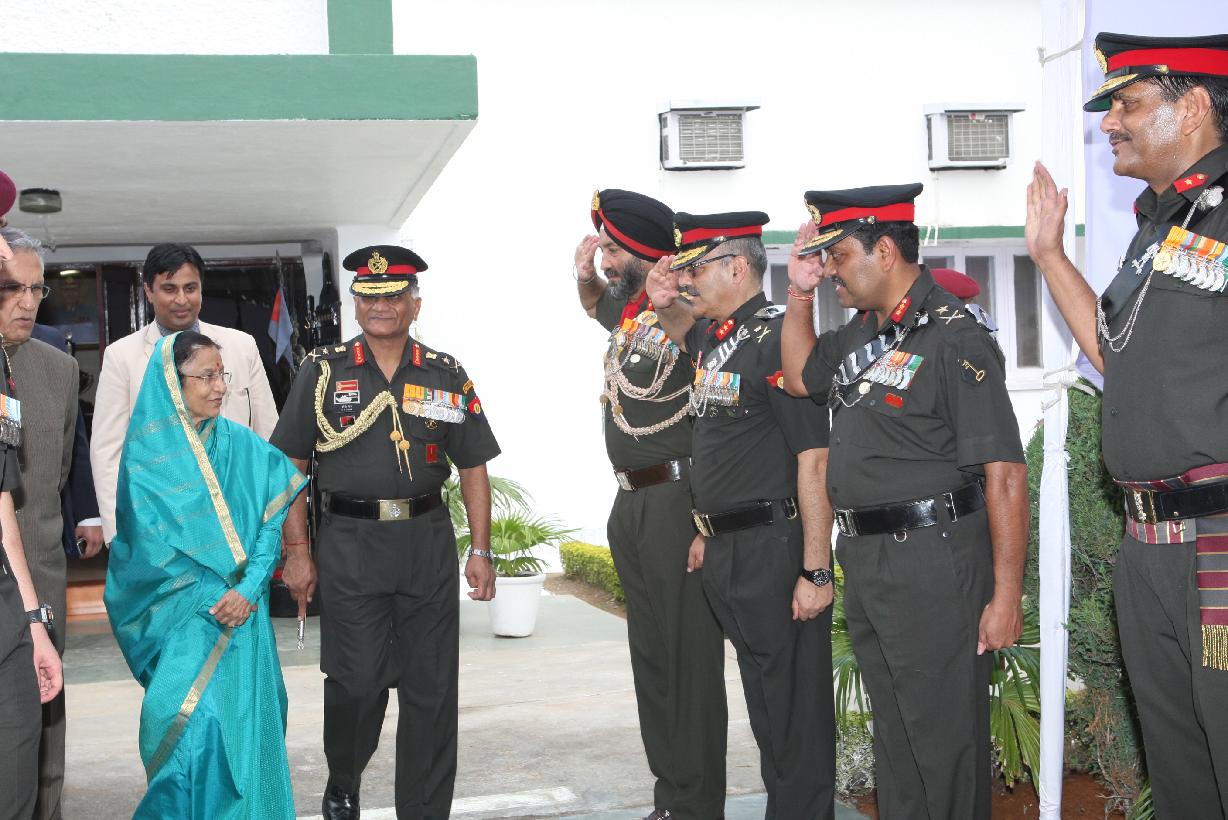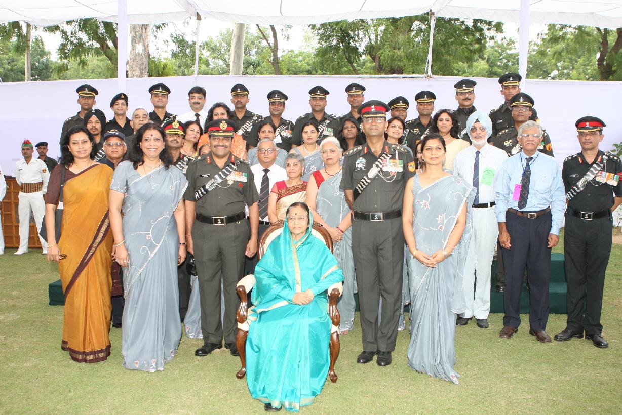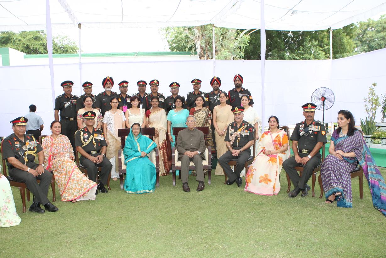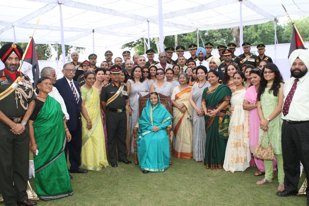 | Caption: | The President of India, Smt Pratibha Devisingh Patil posing for a Group Photograph with Officers and Ladies at Babina in Uttar Pradesh on Oct 19, 2010 |
