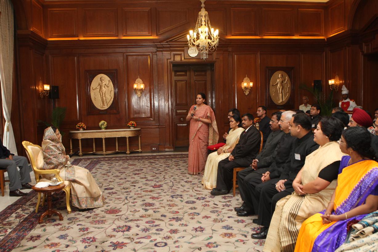 | Caption: | The President of India, Smt Pratibha Devisingh Patil calling by State Civil Service Officers Promoted to the Indian Administrative Service (IAS) at Rashtrapati Bhavan New Delhi on April 06,2010 |