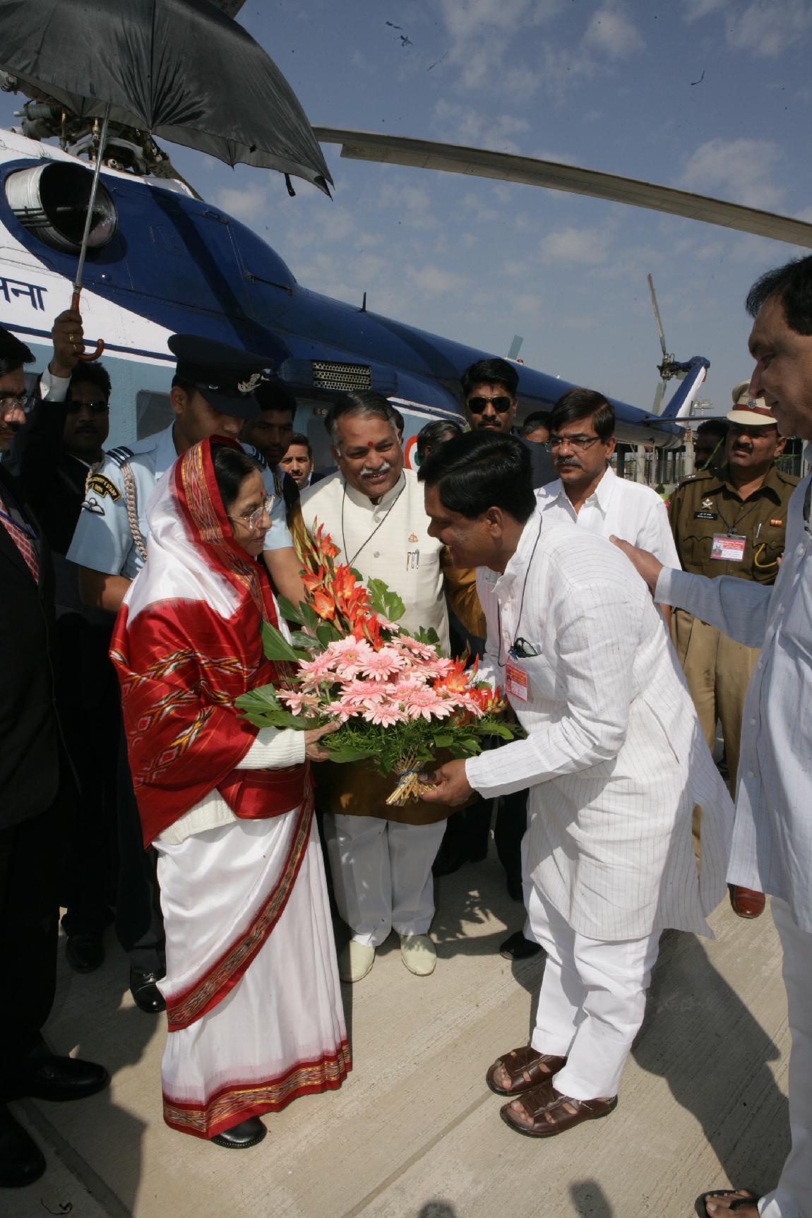 | Caption: | The President of India, Smt Pratibha Devisingh Patil arriving at Aurangabad Airport in Maharashtra on Feb 10, 2008 |