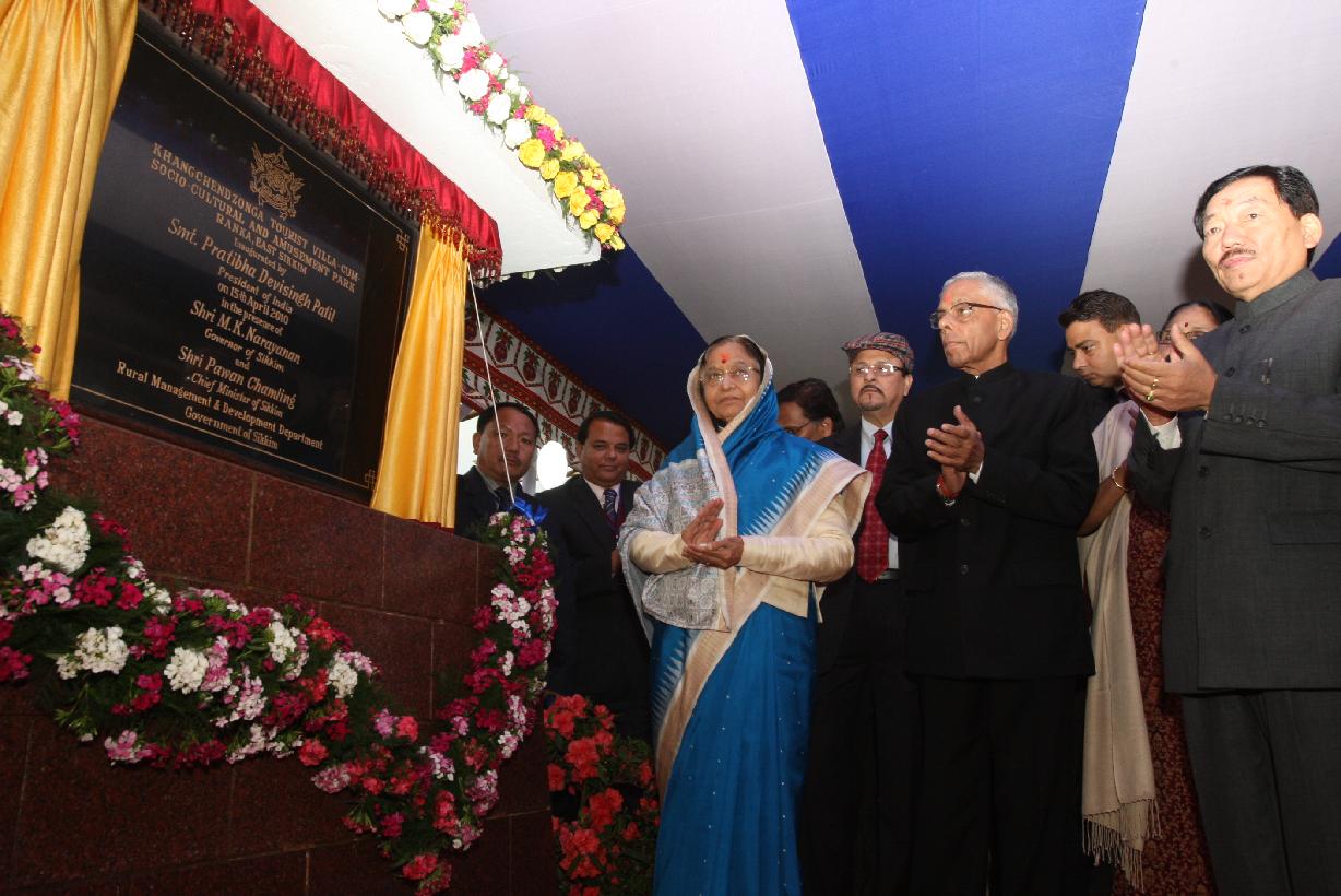 | Caption: | The President of India, Smt Pratibha Devisingh Patil during the Inauguration of Khangchendzonga Tourist Villa-Cum-Socio-Cultural and Amusement Park at Ranka in Sikkim on April 15, 2010 |