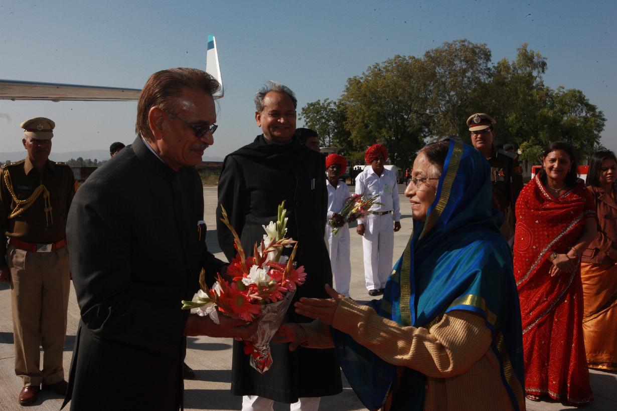 | Caption: | The President of India, Smt Pratibha Devisingh Patil before departure from Maharana Pratap Airport at Udaipur in Rajasthan on Dec 22, 2010 |