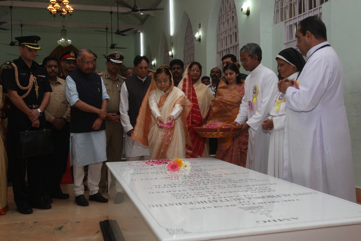 | Caption: | The President of India, Smt Pratibha Devisingh Patil paying her tributes at the Chapel at Bharananganam to St Alphonse at the Concluding function of the Birth Centenary Celebrations at Kochi in Kerala on Aug 12, 2010 |