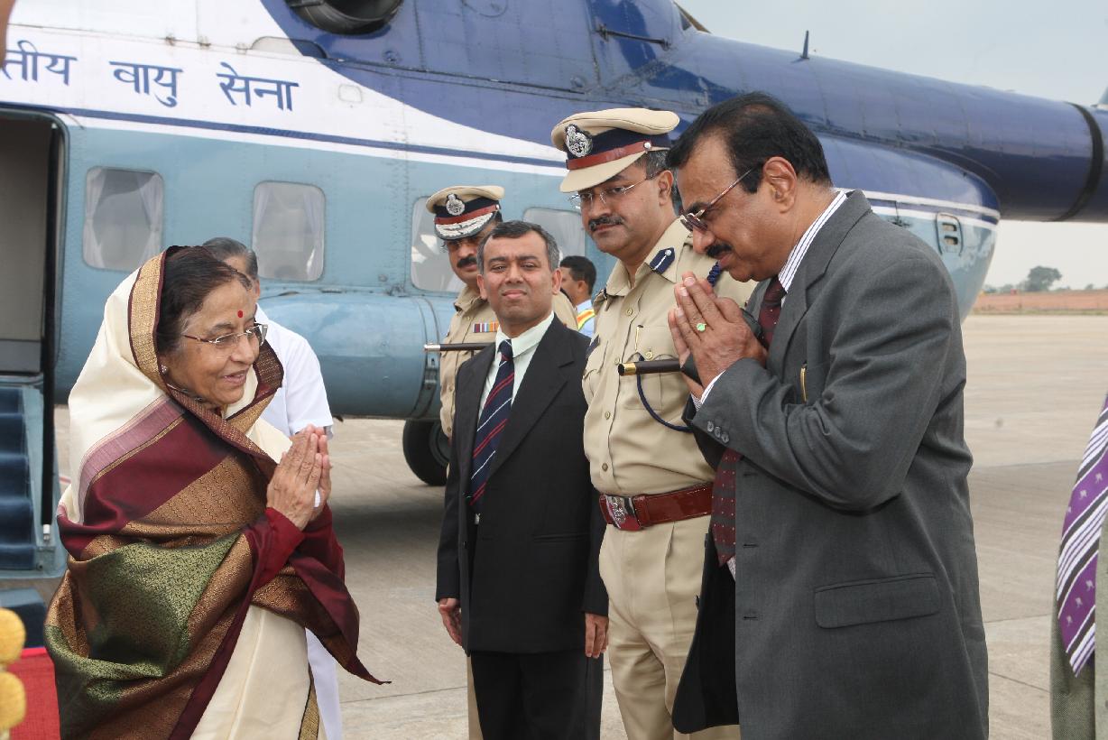 | Caption: | The President of India, Smt Pratibha Devisingh Patil arriving at Mangalore Airport in Karnataka on Dec 09, 2010 |
