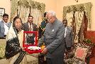 | Caption: | The President of India, Smt Pratibha Devisingh Patil exchanging Gifts with the Governor of Jharkhand, Shri M O Hasan Farook at Raj Bhavan in Ranchi, Jharkhand on Dec 10, 2010 |