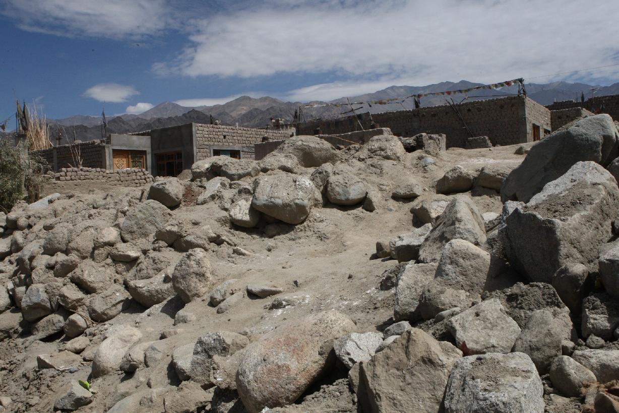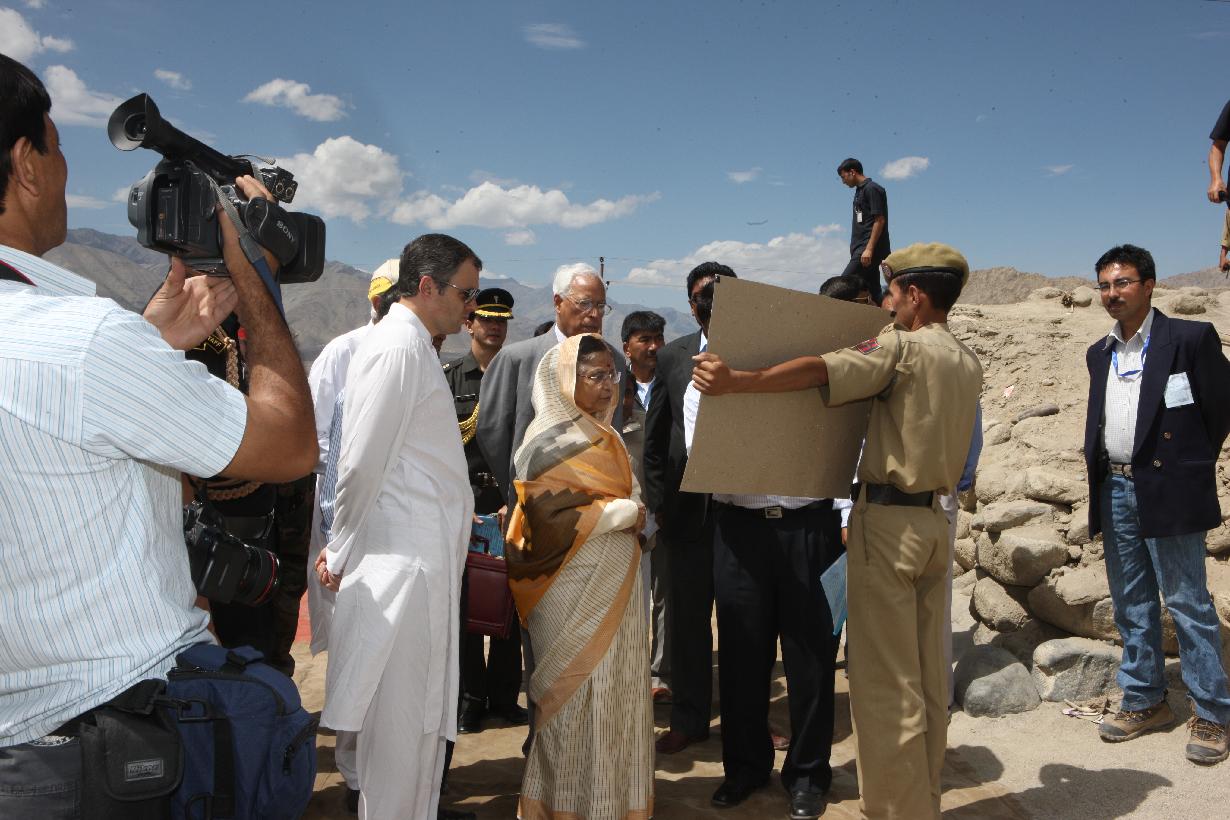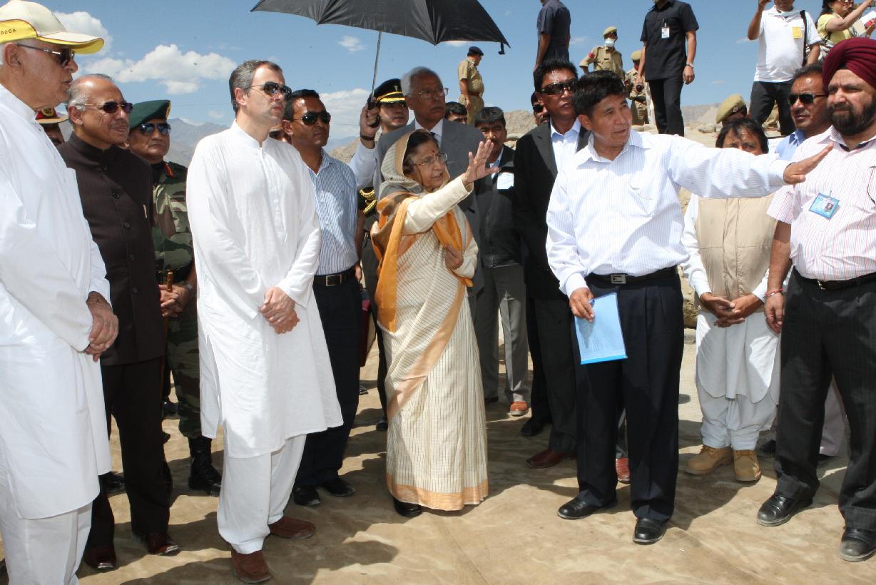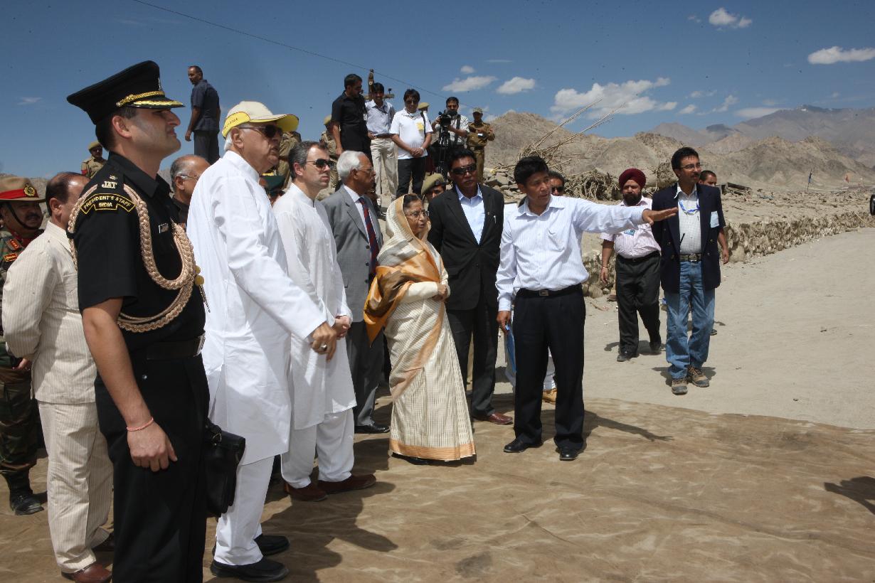 | Caption: | The President of India, Smt Pratibha Devisingh Patil seeing the Cloudburst Affected Area during her visit to Jammu & Kashmir at Leh in Jammu & Kashmir on Sep 01, 2010 |