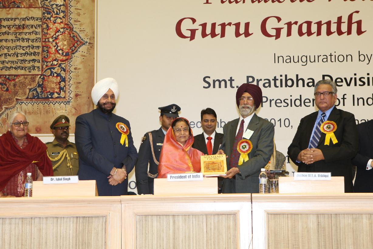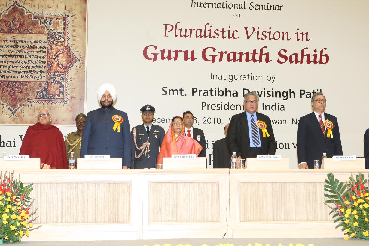| Caption: | The President of India, Smt Pratibha Devisingh Patil inaugurating the Shabad Guru at the International Seminar on Pluralistic Vision in Guru Granth Sahib at Vigyan Bhavan in New Delhi on Dec 16, 2010 |