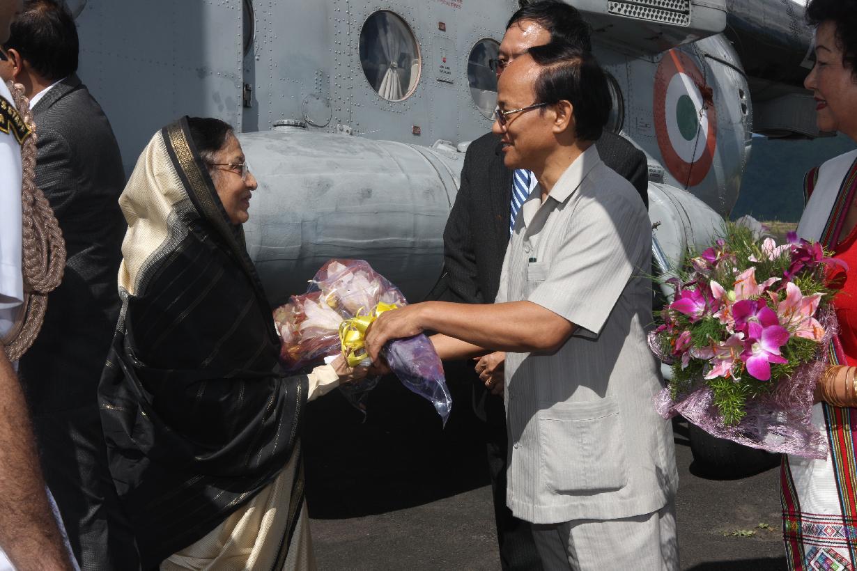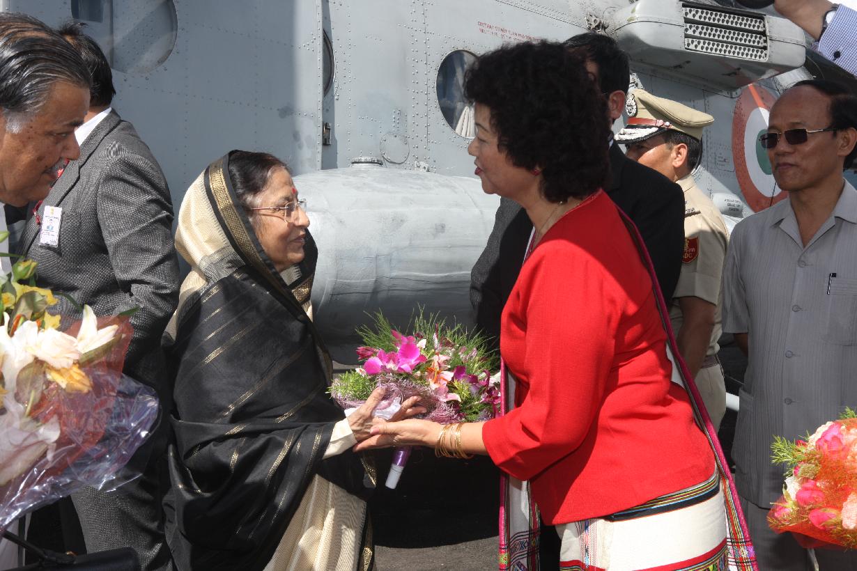 | Caption: | The President of India, Smt Pratibha Devisingh Patil arriving at Thuampui Helipad in Mizoram on Sep 23, 2010 |