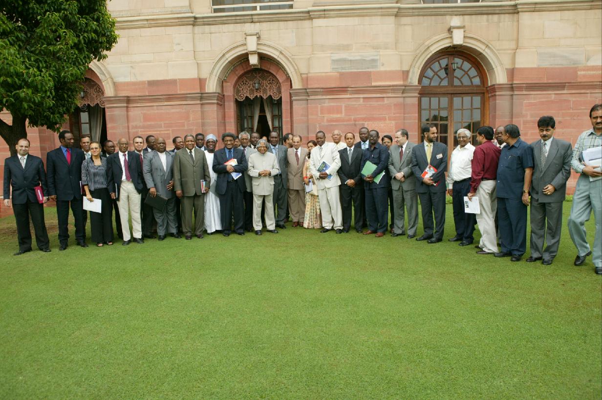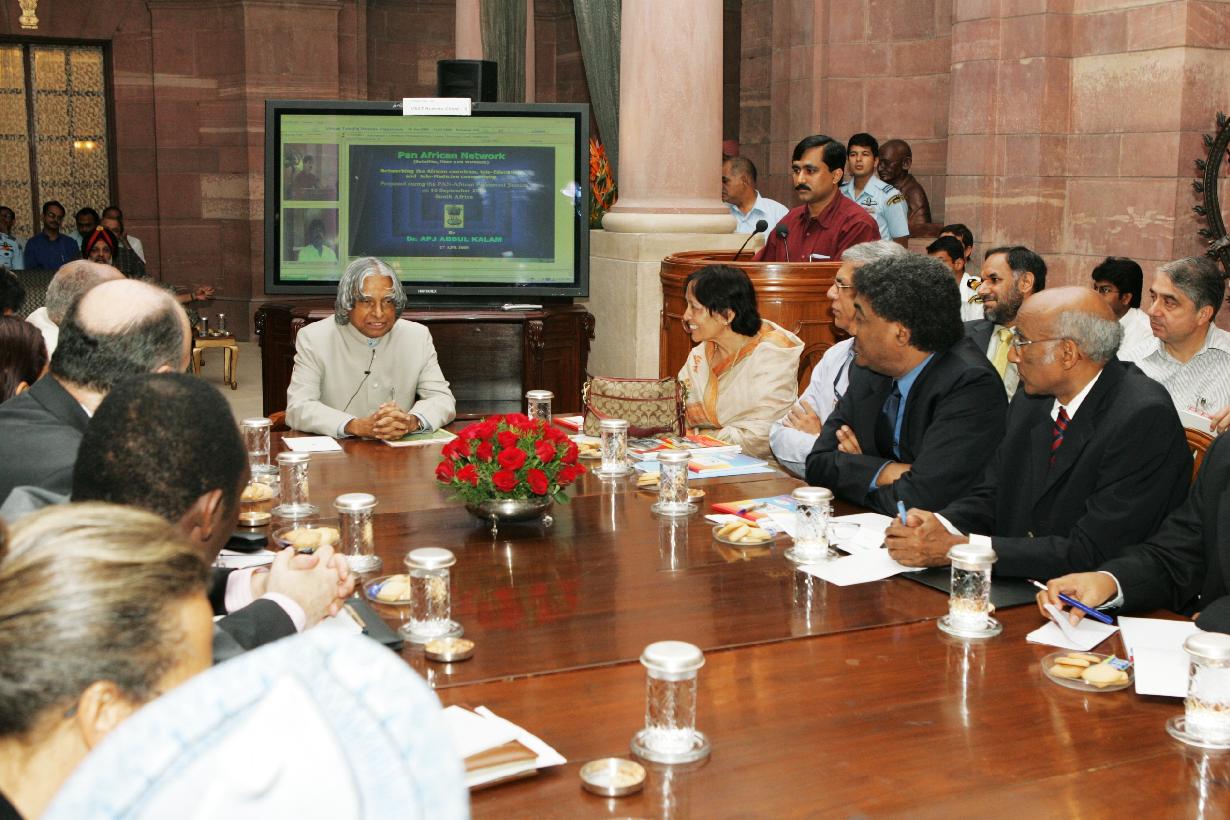 | Caption: | The President of India, Dr A P J Abdul Kalam at an Introduction of PAN African Network by MEA at the Intellectual Room of Rashtrapati Bhavan in New Delhi on June 28, 2005 |