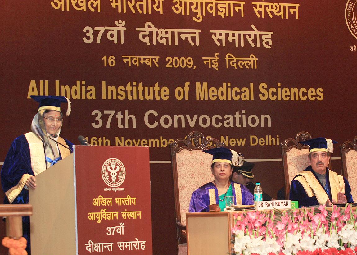 | Caption: | The President of India, Smt Pratibha Devisingh Patil during the 37th Annual Convocation of the All India Institute of Medical Sciences (AIIMS) at AIIMS in New Delhi on Nov 16, 2009 |
