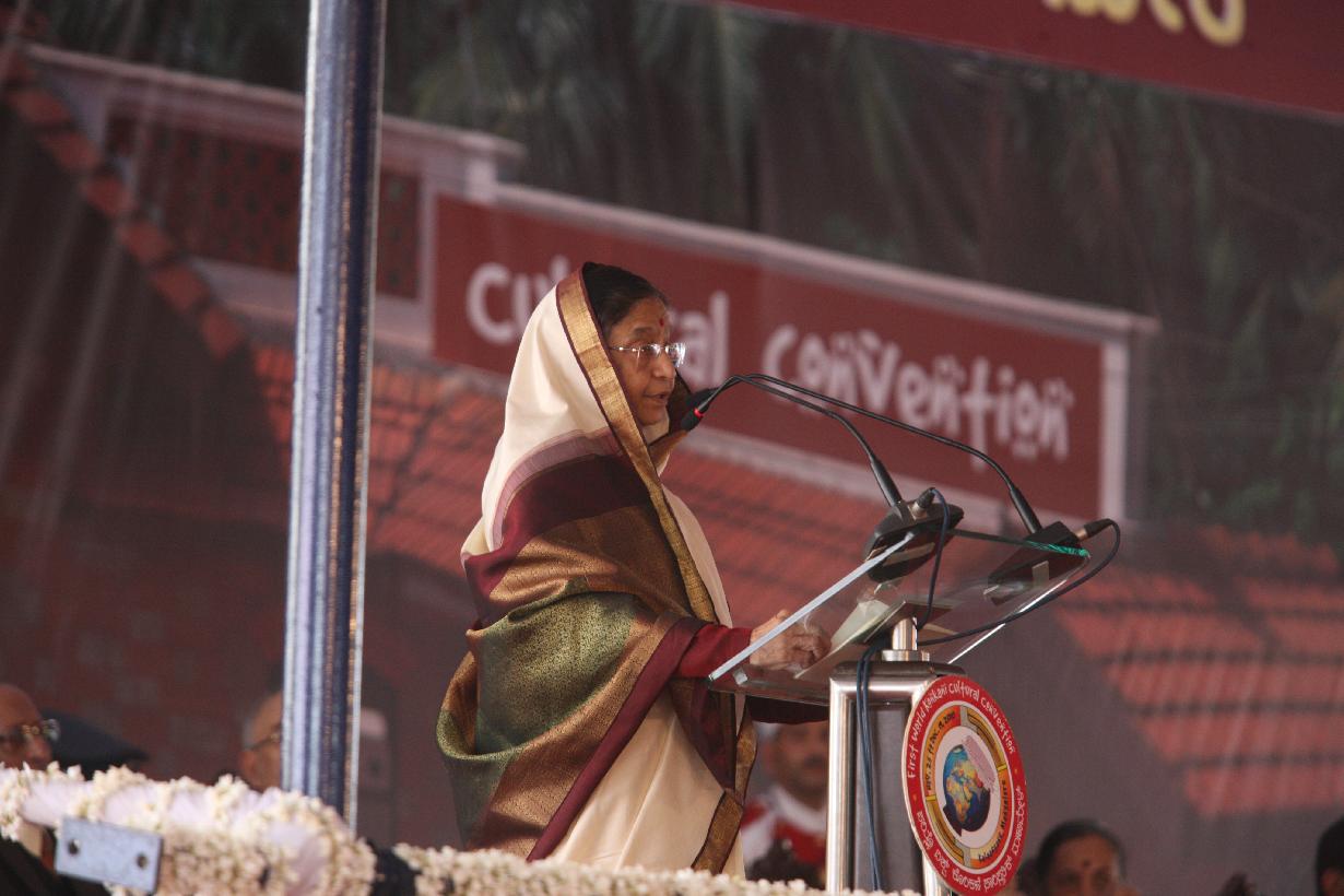 | Caption: | The President of India, Smt Pratibha Devisingh Patil at the Vishwa Konkani Ekta Divas and honouring one of the members of the Konkani organisations from around the world, during the Vishwa Konkani Ekta Divas at Mangalore in Karnataka on Dec 09, 2010 |
