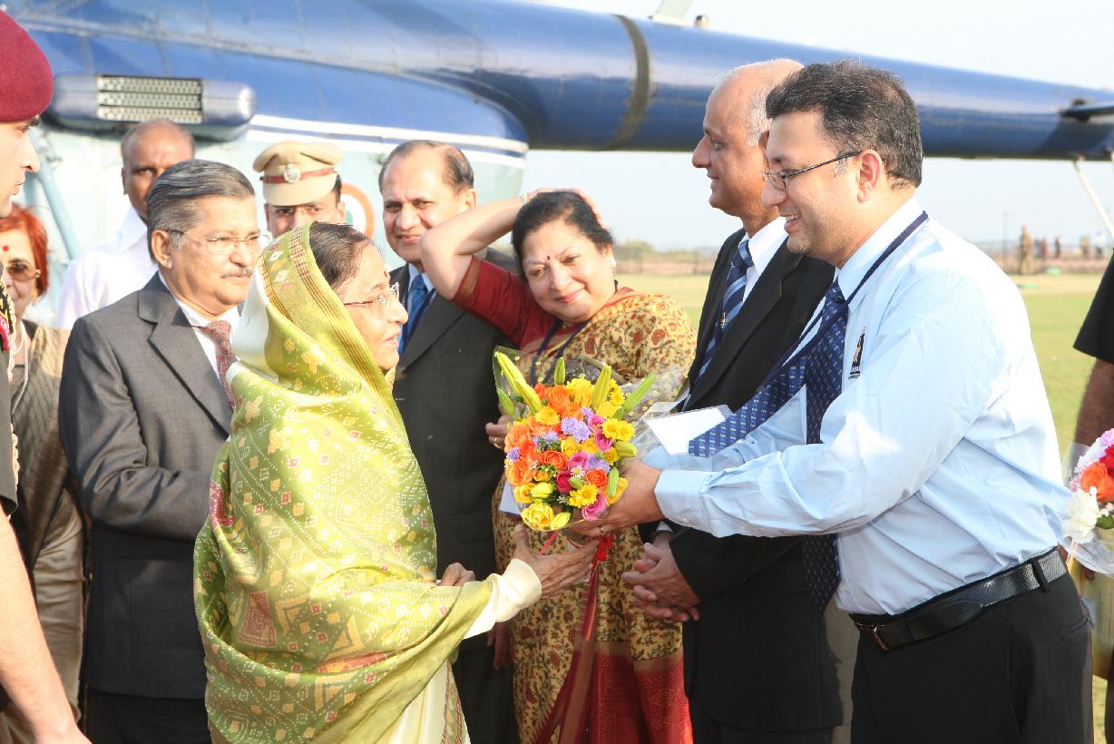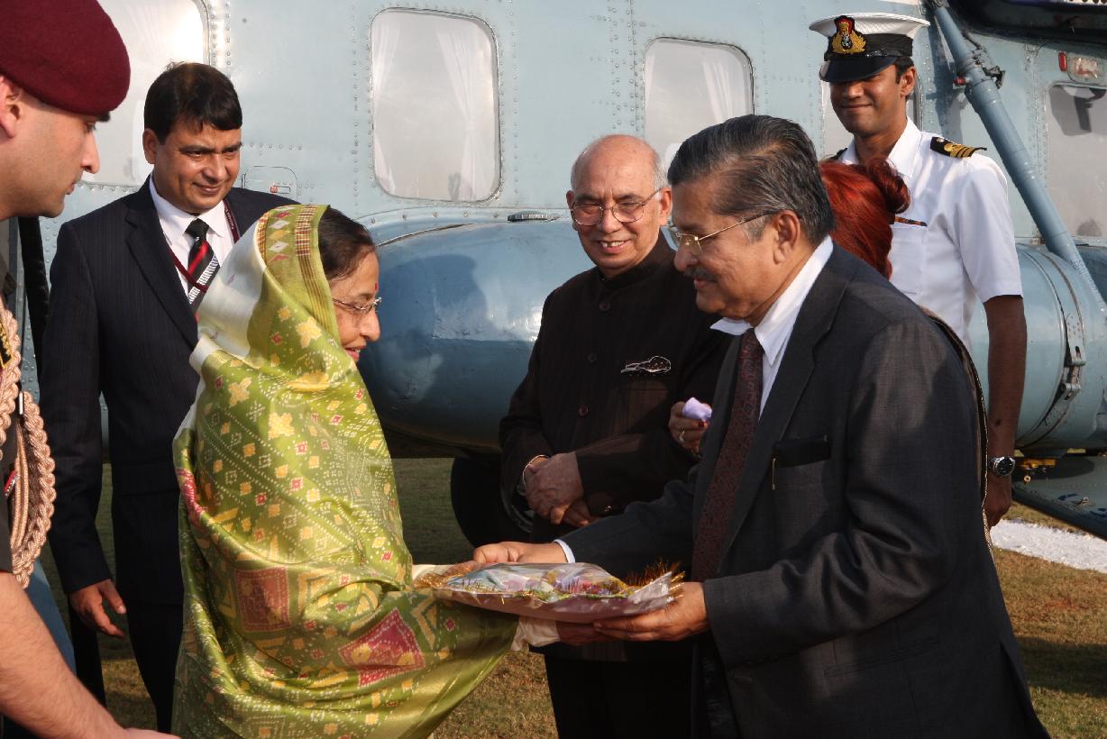 | Caption: | The President of India, Smt Pratibha Devisingh Patil arriving at Manipal University Helipad in Karnataka on Dec 08, 2010 |