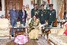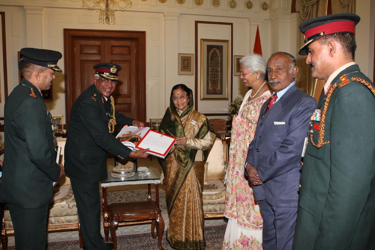 | Caption: | The President of India, Smt Pratibha Devisingh Patil interacting with Lt Gen J K Srivastava and his wife at Rashtrapati Bhavan in New Delhi on Dec 07, 2010 |