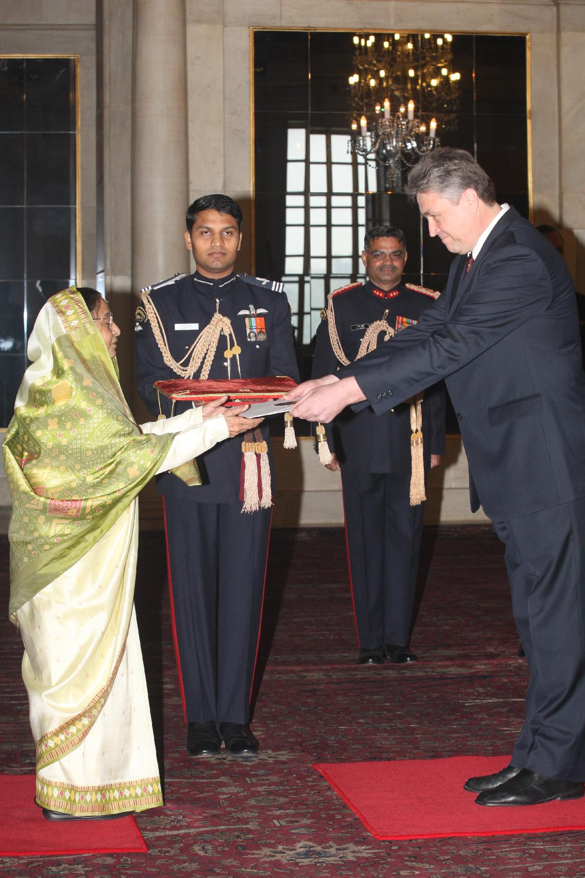 | Caption: | The Ambassador-Designate of Ukraine to India, HE Mr Oleksandr D Shevchenko presenting his credentials to the President of India, Smt Pratibha Devisingh Patil at Rashtrapati Bhavan in New Delhi on Dec 08, 2010 |