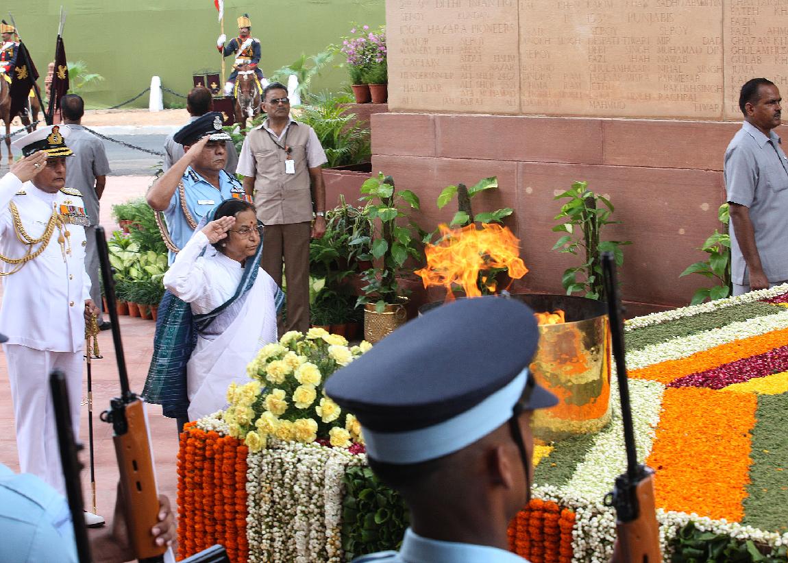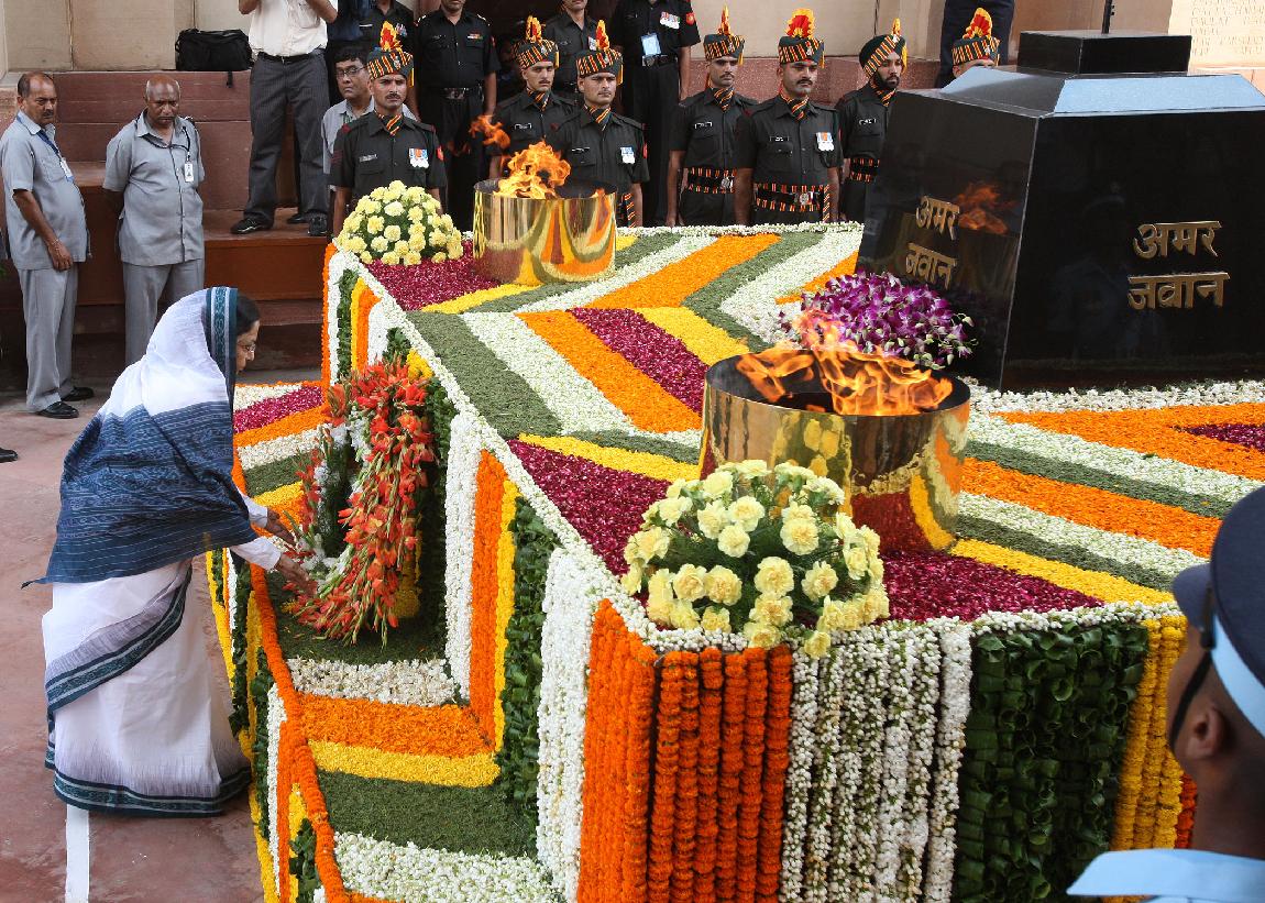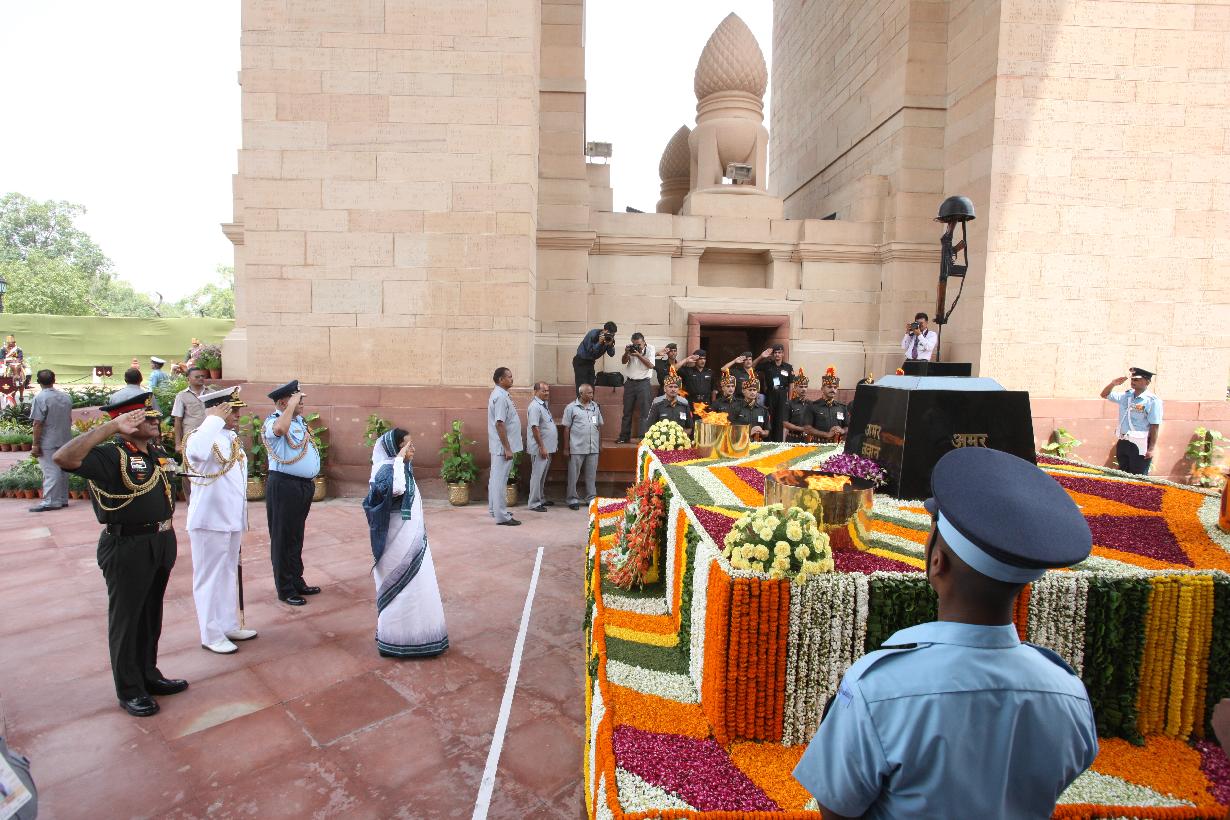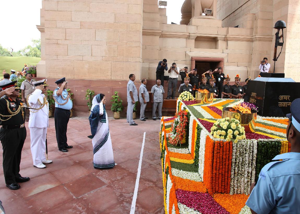 | Caption: | The President of India, Smt Pratibha Devisingh Patil paying her tributes at the Amar Jawan Jyoti on the occasion of the 64th Independence Day at India Gate in New Delhi on Aug 15, 2010 |