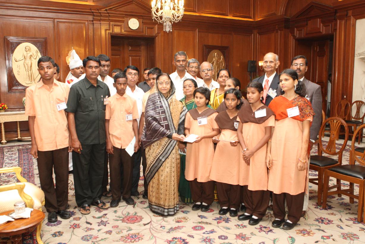 | Caption: | The President of India, Smt Pratibha Devisingh Patil interacting with the Students from Dr Narendra Bhiwapurkar Andh Vidyalaya from Amravati at Rashtrapati Bhavan in New Delhi on Sep 29, 2010 |